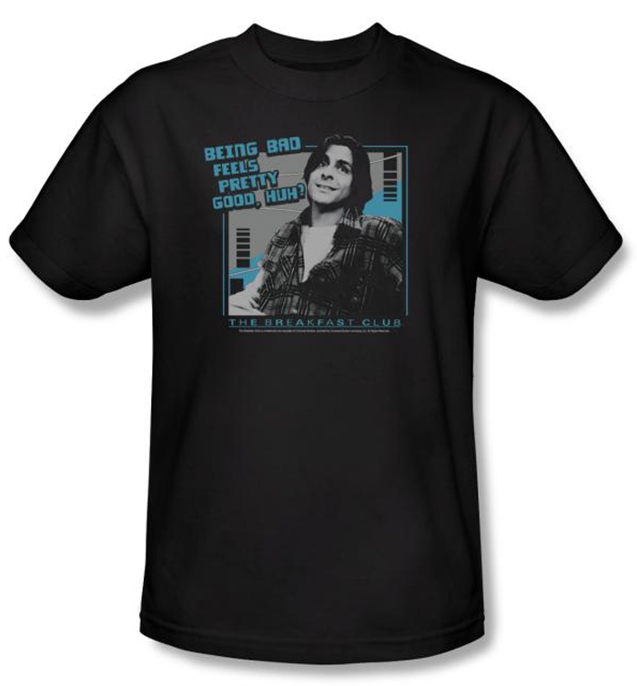 | | The Breakfast Club T-shirt Movie Bad Adult Black Tee ShirtThe Breakfast Club T-shirt Movie Bad Adult Black Tee Shirt features an image of a smiling Bender running wild in blue flannel shirt while riling up fellow students during detention with phrase Being Bad Feels Pretty Good, Huh? as movie title The Breakfast Club sits below. Our t shirt makes an amazing gift for any fan of John Hughes’ 1985 coming of age teen comedy drama film The Breakfast Club and Judd Nelson who was born in Portland, Maine son of Merle Nelson a court mediator and former member of Maine State Legislature and Leonard Nelson a corporate lawyer and the first Jewish President of the Portland Symphony Orchestra. Available in Small, Medium, Large, XL, 2XL & 3XL Officially Licensed |