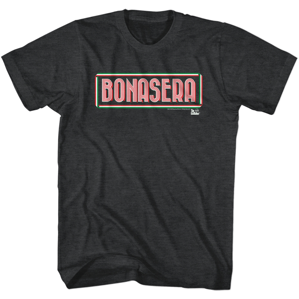 | | The Godfather Shirt Bonasera Charcoal Heather T-ShirtThe Godfather Shirt Bonasera Charcoal Heather T-Shirt This is a black adult shirt with Bonasera on it. Bonasera was a longtime acquaintance of Vito Corleone. Officially Licensed Available in Small, Medium, Large, XL & 2XL ![]() |