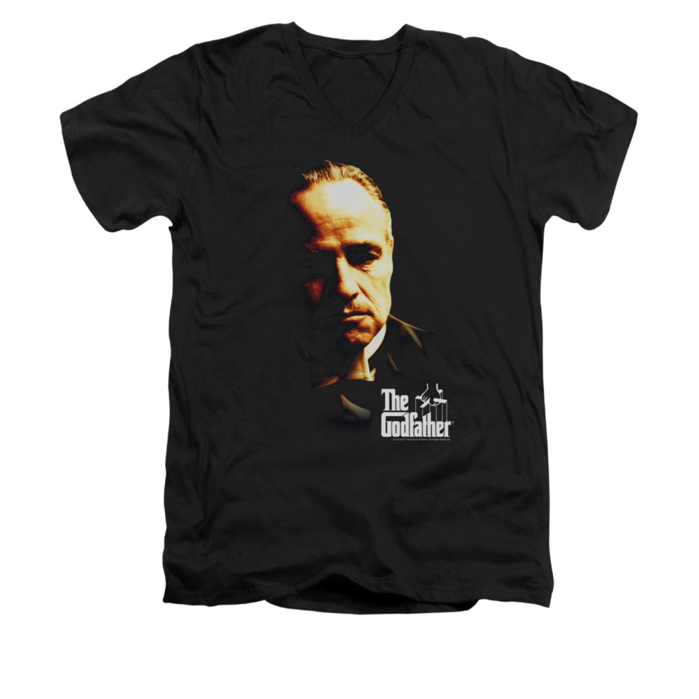 | | The Godfather Shirt Slim Fit V Neck Don Vito Black Tee T-ShirtThe Godfather Shirt Slim Fit V Neck Don Vito Black Tee T-Shirt Officially Licensed Available in Small, Medium, Large, XL & 2XL Our The Godfather shirts is a 1972 American crime mafia film perfect for any fans of this movie. ![]() |