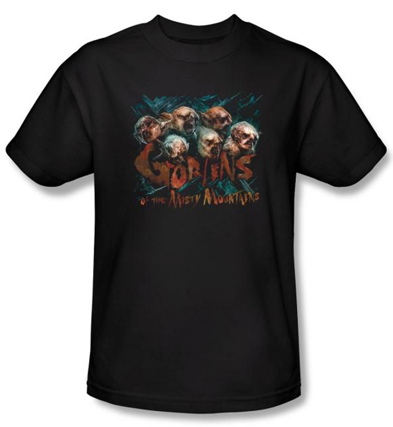 | | The Hobbit Kids Shirt Movie Unexpected Journey Misty Goblin Black TeeAvailable in Small(6-8), Medium(10-12), Large(14-16), & XL(18-20) Also available in Toddler sizes: Small (4), Medium (5/6), & Large (7) AVAILABLE IN ADULTS SIZES. Officially Licensed |