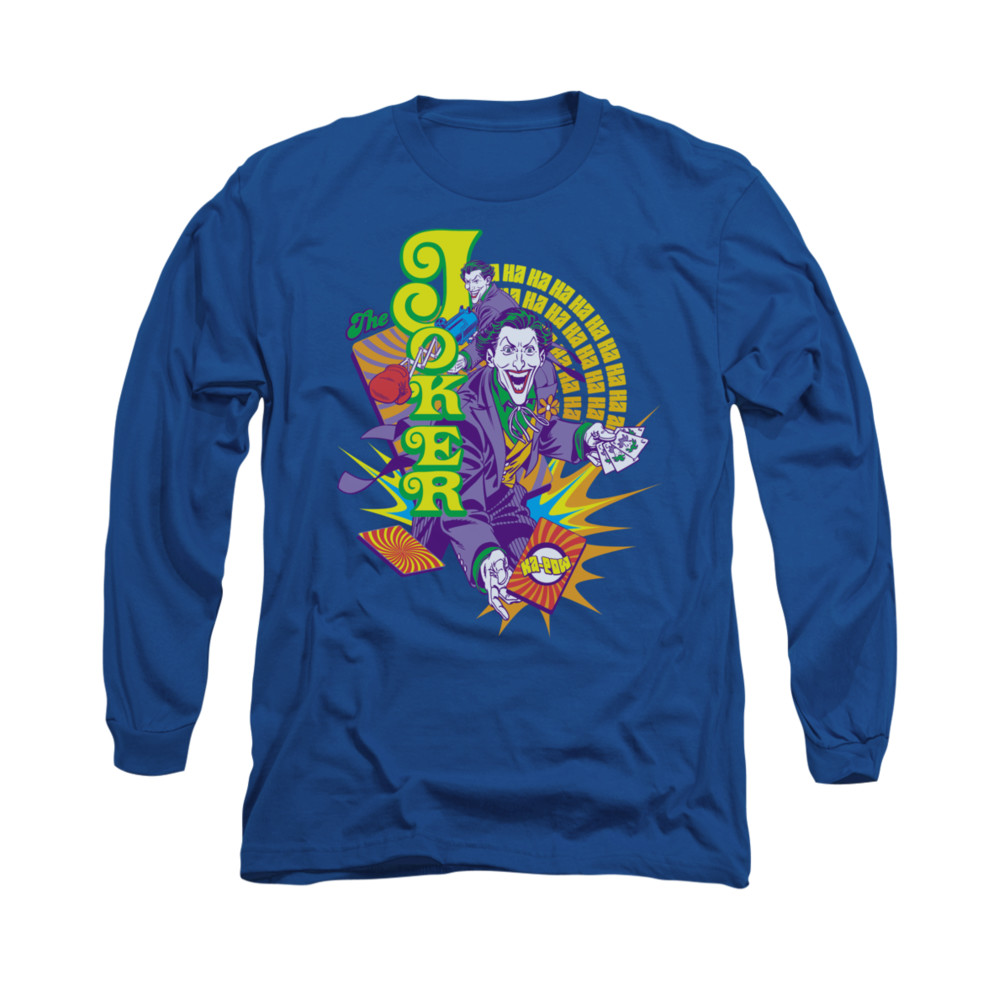 | | The Joker Shirt Raw Deal Long Sleeve Royal Blue Tee T-ShirtThe Joker Shirt Raw Deal Long Sleeve Royal Blue Tee T-Shirt Batmans archenemy, The Joker is forever an iconic character in the comic series. Officially Licensed Available in Small, Medium, Large, XL, 2XL ![]() |