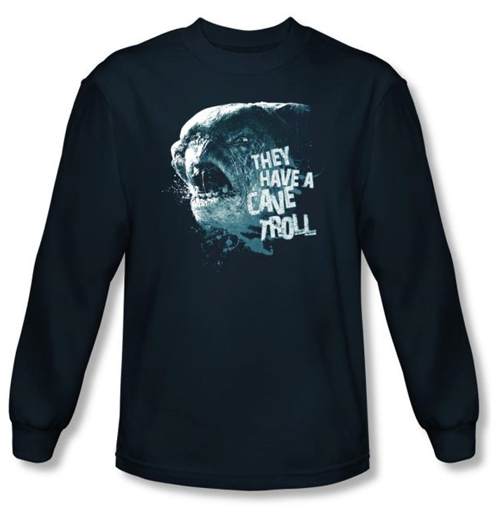 | | The Lord Of The Rings Long Sleeve T-Shirt Cave Troll Navy Tee ShirtThis Lord of the Rings movie book long sleeve t-shirt features a detailed image a They Have A Cave Troll. Cave-trolls are a race of Trolls found within the caverns of the Misty Mountains. The Lord of the Rings is an epic film trilogy consisting of three fantasy adventure films based on the three-volume book. This Exclusive The Lord of the Rings t-shirt is the ultimate shirt for the Lord of the Rings fan! The trilogy was a great financial success, with the films collectively being the sixth highest grossing film series of all time. Available in Small, Medium, Large, XL, 2XL Officially Licensed |