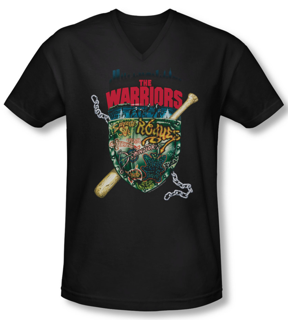 The Warriors Shirt Slim Fit V Neck Shield Black Tee T-Shirt