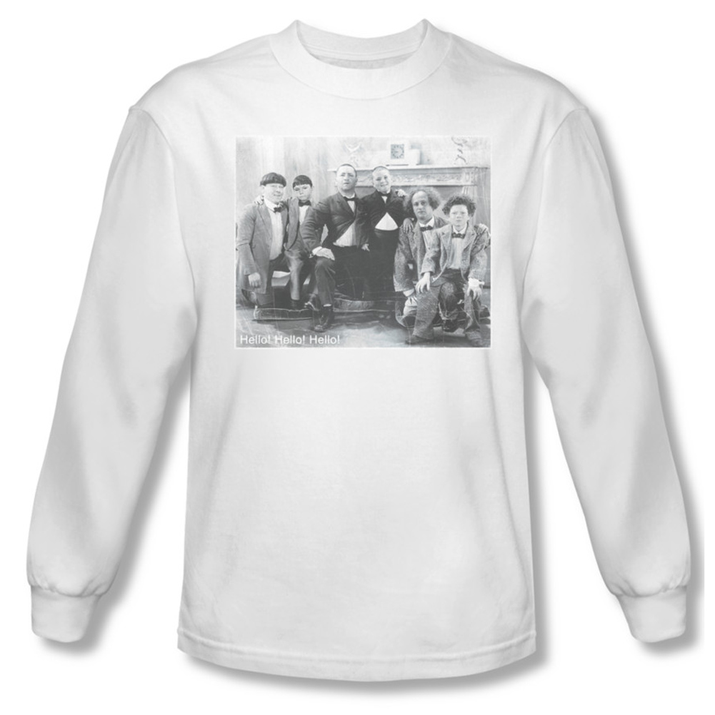 Three Stooges Shirt Hello Long Sleeve White Tee T-Shirt