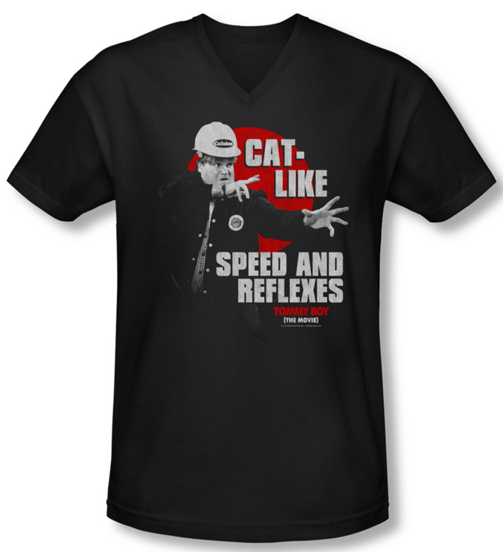 Tommy Boy Shirt Slim Fit V Neck Cat Like Black Tee T-Shirt