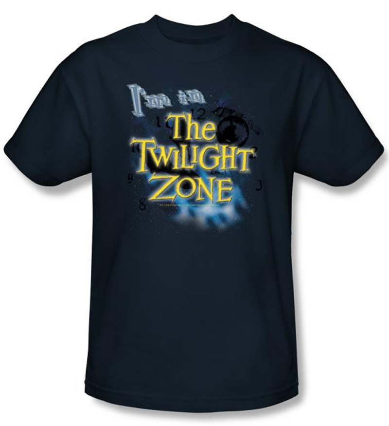 | | The Twilight Zone T-Shirt - I'm In The Twilight Adult Navy BlueThe classic Rod Serling drama is brought to life on this tee. Enter the Twilight Zone. Let everyone know exactly where you stand with this 100% cotton, high-quality, pre-shrunk, machine-washable, navy t-shirt. Order yours today! Available in Small, Medium, Large, XL, 2XL & 3XL! AVAILABLE IN KIDS SIZES. Officially Licensed! |
