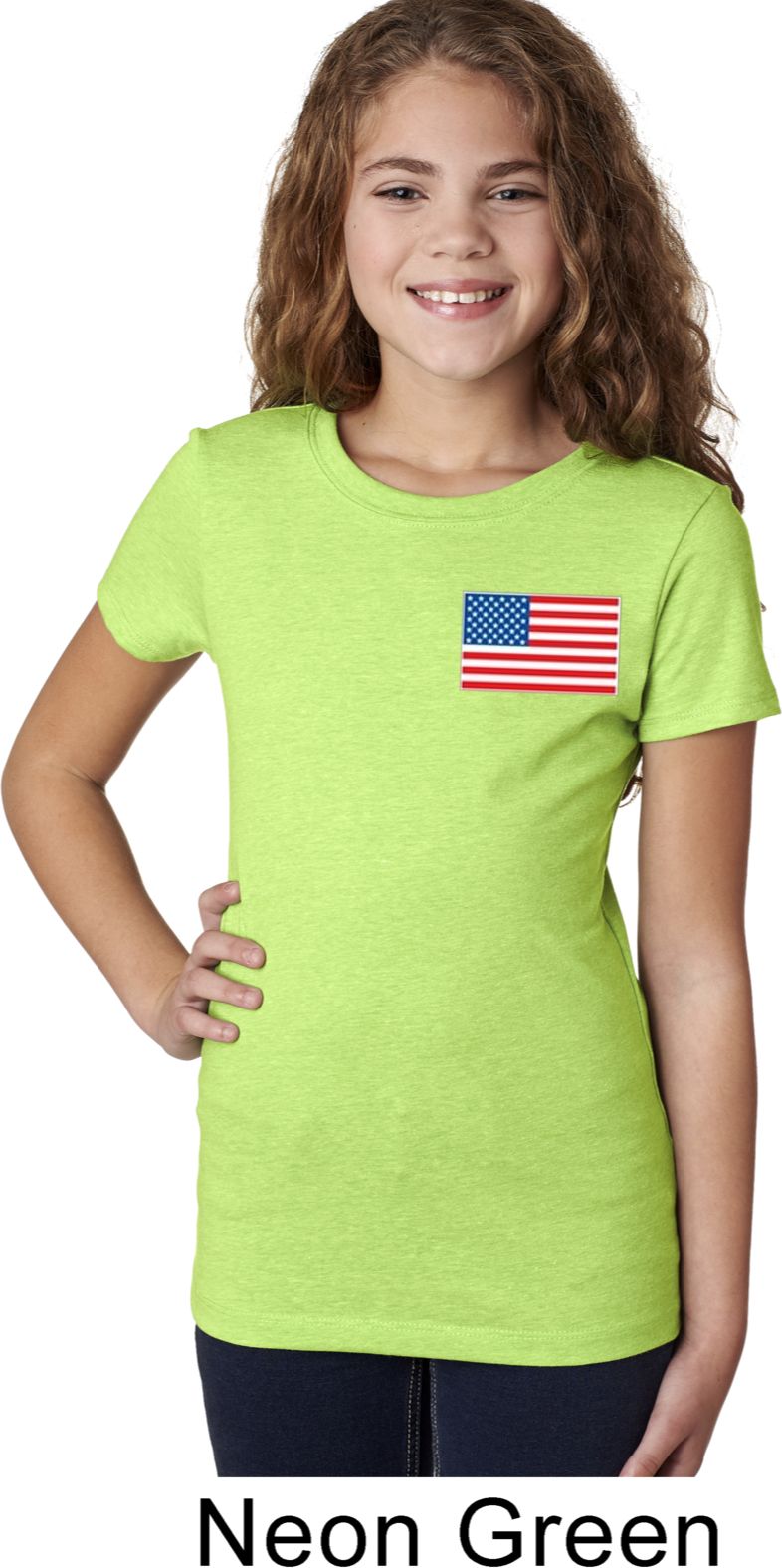 | | US Flag Pocket Print Girls ShirtUS Flag Pocket Print Girls Shirt Show your love for the United States of America while wearing our US flag design A cotton/poly blend Available in Youth XS, Youth Small, Youth Medium, Youth Large & Youth XL Also available in colors Apple Green, Banana Cream, Bondi Blue, Ice Blue, Lilac, Mint, Neon Green, Neon Orange, Neon Pink, Neon Yellow, Orange, Purple, Raspberry, and Silk |