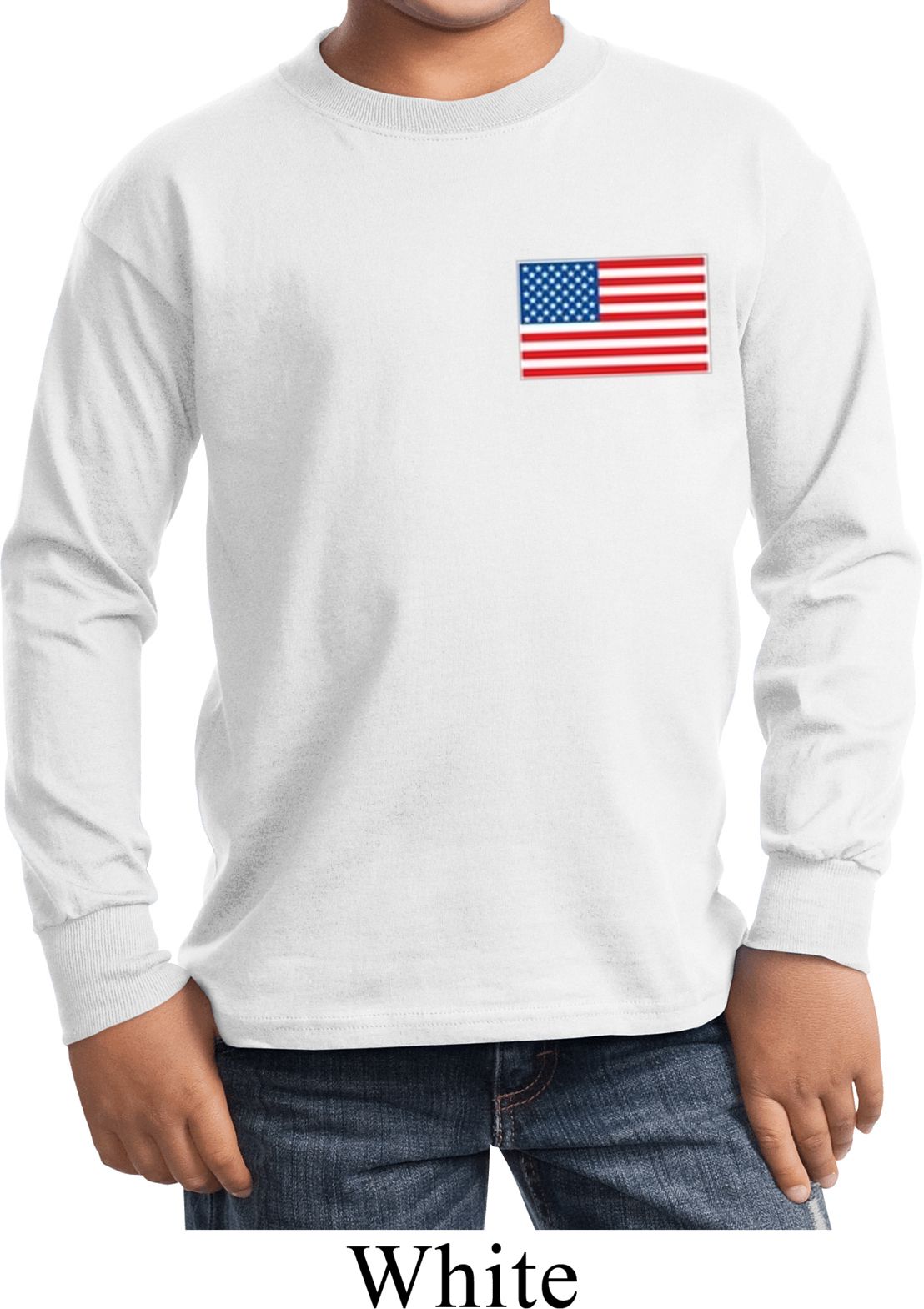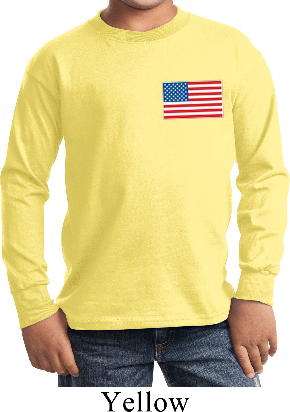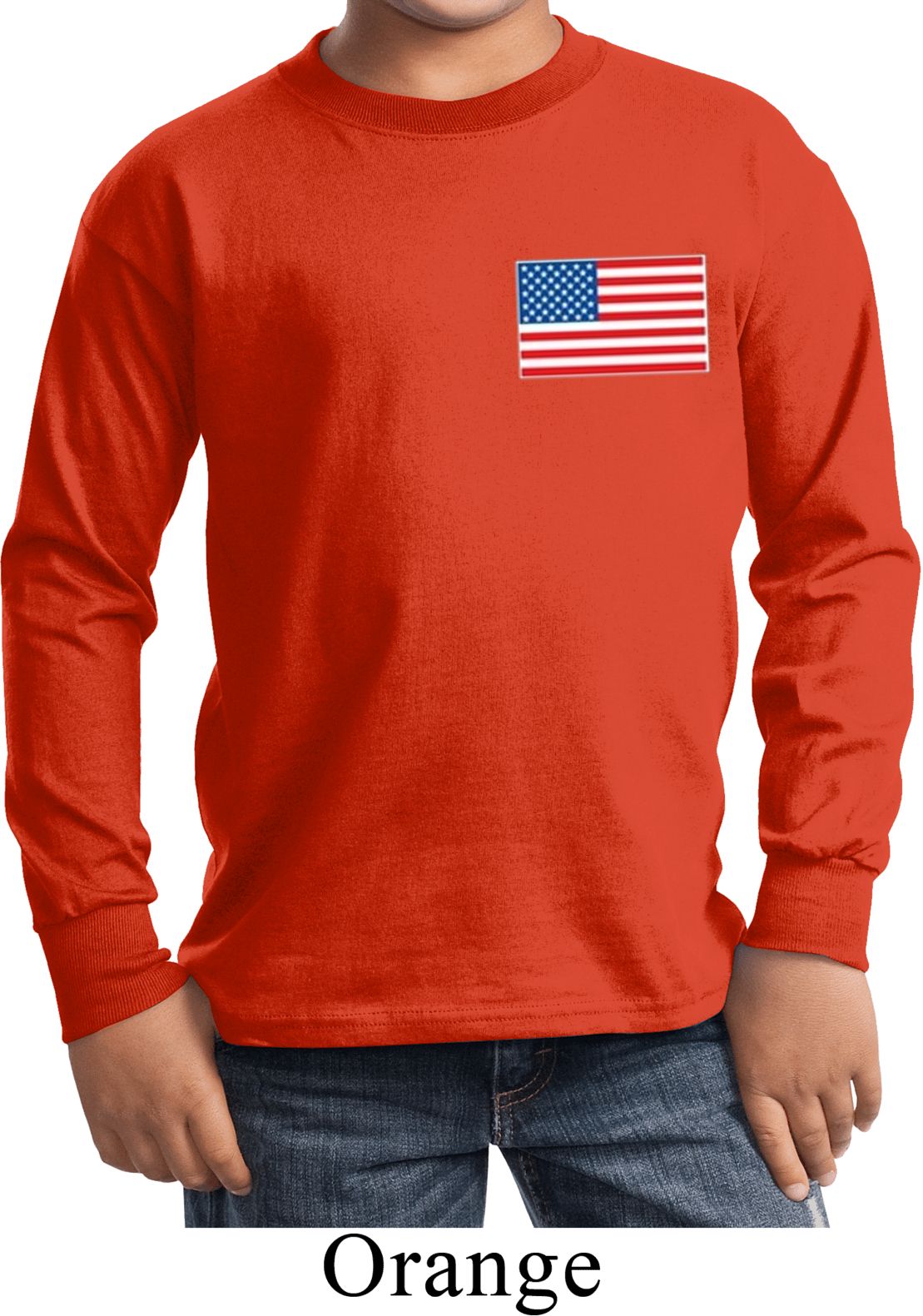 | | US Flag Pocket Print Kids Long Sleeve ShirtUS Flag Pocket Print Kids Long Sleeve Shirt Show your love for the United States of America while wearing our US flag design 100% cotton Ash and athletic heather are a cotton/poly blend Available in Youth Small, Youth Medium, Youth Large & Youth XL Also available in colors Ash, Athletic Heather, Athletic Maroon, Black, Charcoal, Dark Green, Gold, Navy, Orange, Purple, Red, Royal, White, and Yellow ![]() |