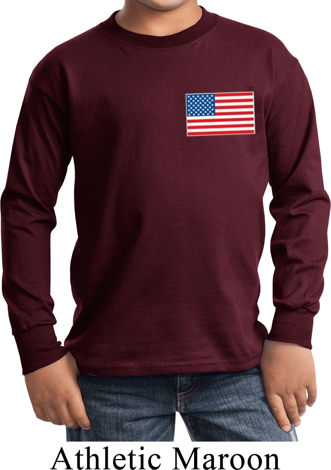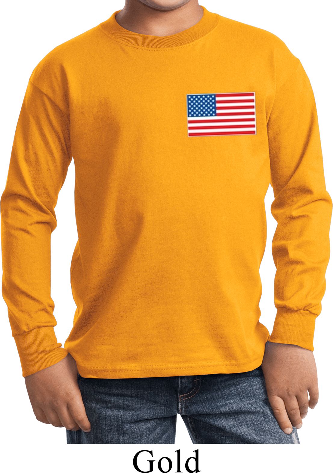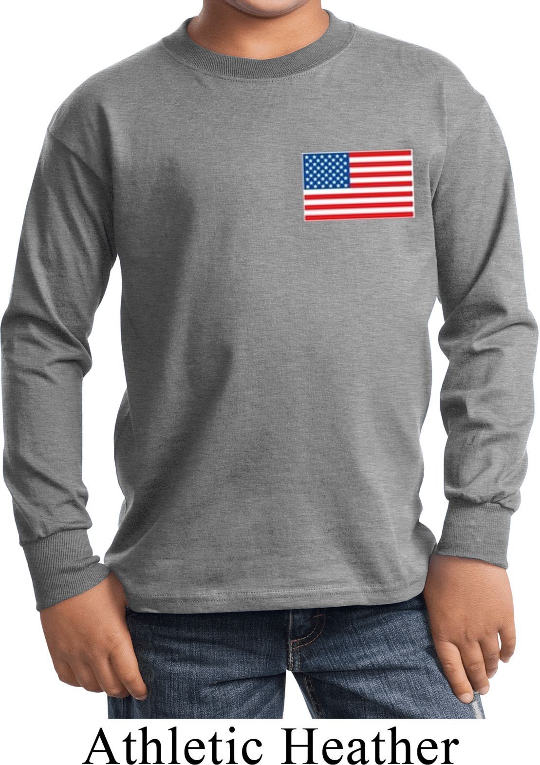 | | US Flag Pocket Print Kids Long Sleeve ShirtUS Flag Pocket Print Kids Long Sleeve Shirt Show your love for the United States of America while wearing our US flag design 100% cotton Ash and athletic heather are a cotton/poly blend Available in Youth Small, Youth Medium, Youth Large & Youth XL Also available in colors Ash, Athletic Heather, Athletic Maroon, Black, Charcoal, Dark Green, Gold, Navy, Orange, Purple, Red, Royal, White, and Yellow ![]() |