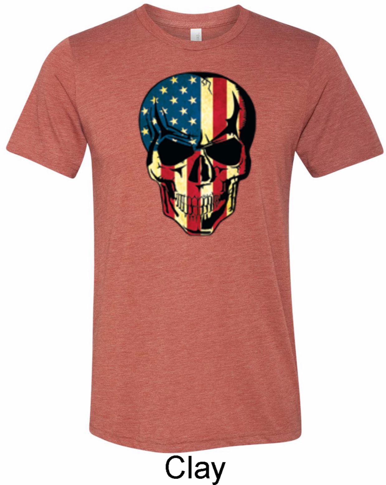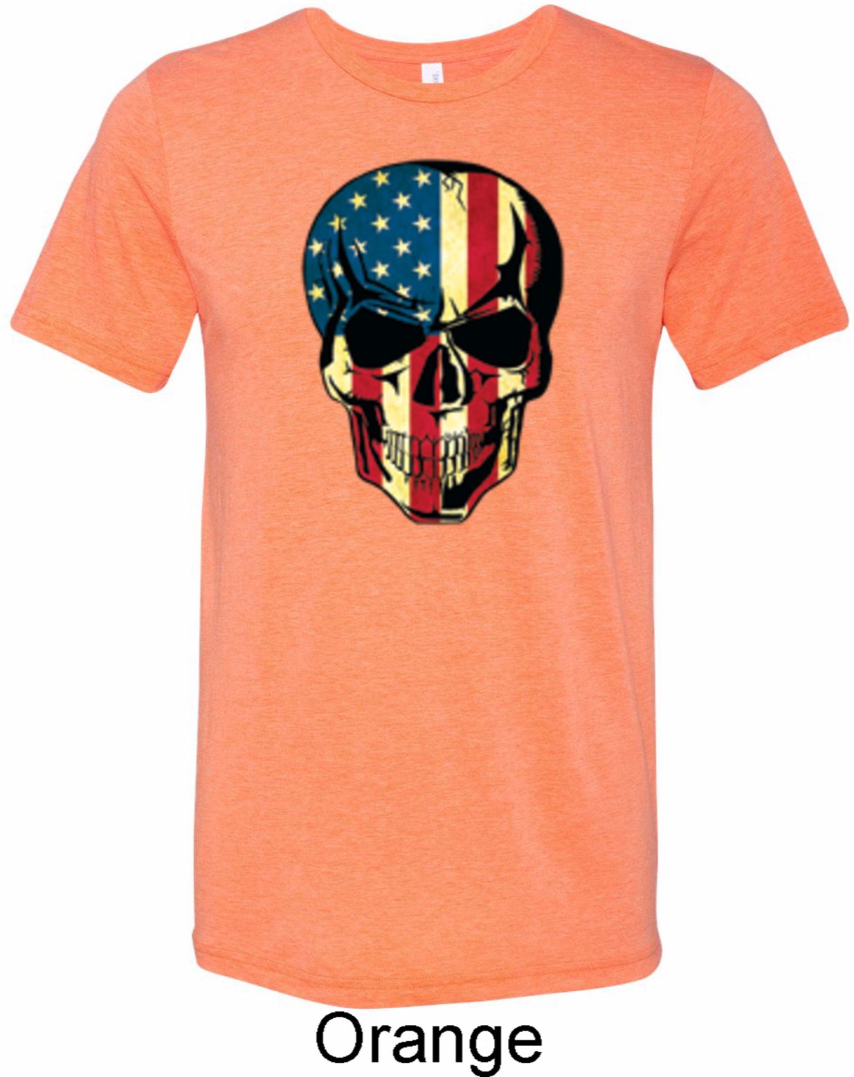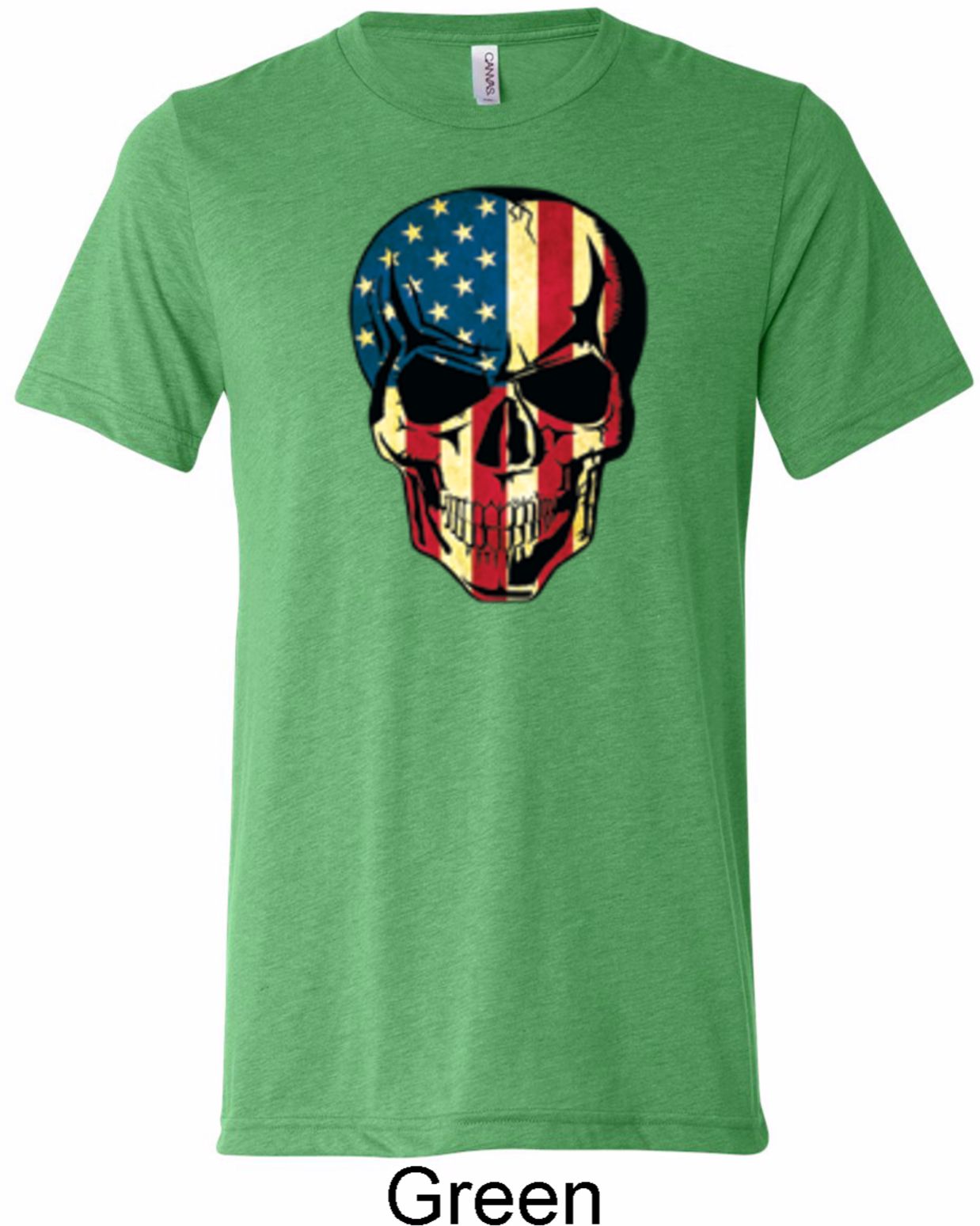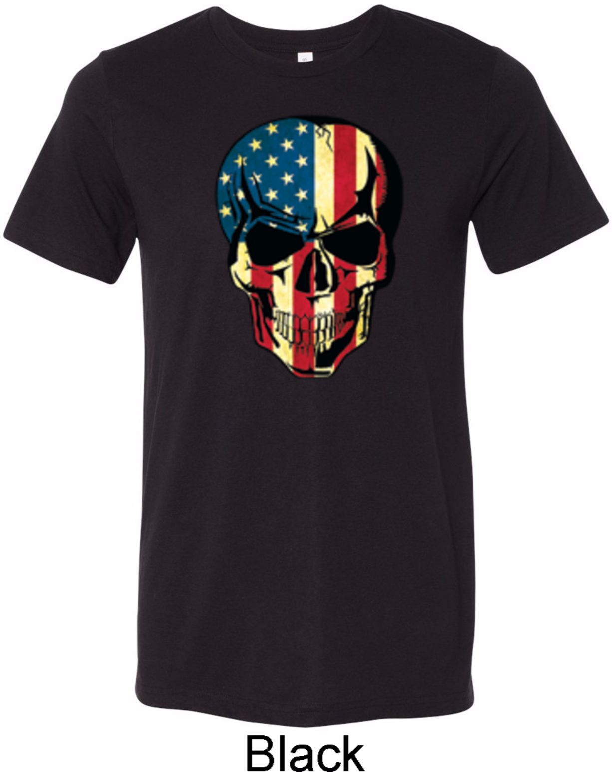 | | USA Skull Mens Tri Blend Crewneck ShirtUSA Skull Mens Tri Blend Crewneck Shirt Show your love for the United States of America while wearing our USA Skull design A cotton/poly/rayon blend Available in Small, Medium, Large, XL & 2XL Also available in colors Aqua, Athletic Grey, Berry, Blue, Brown, Charcoal Black, Clay, Emerald, Green, Grey, Maroon, Navy, Oatmeal, Orange, Purple, Red, Solid Black, Teal, Royal, and White Fleck |
