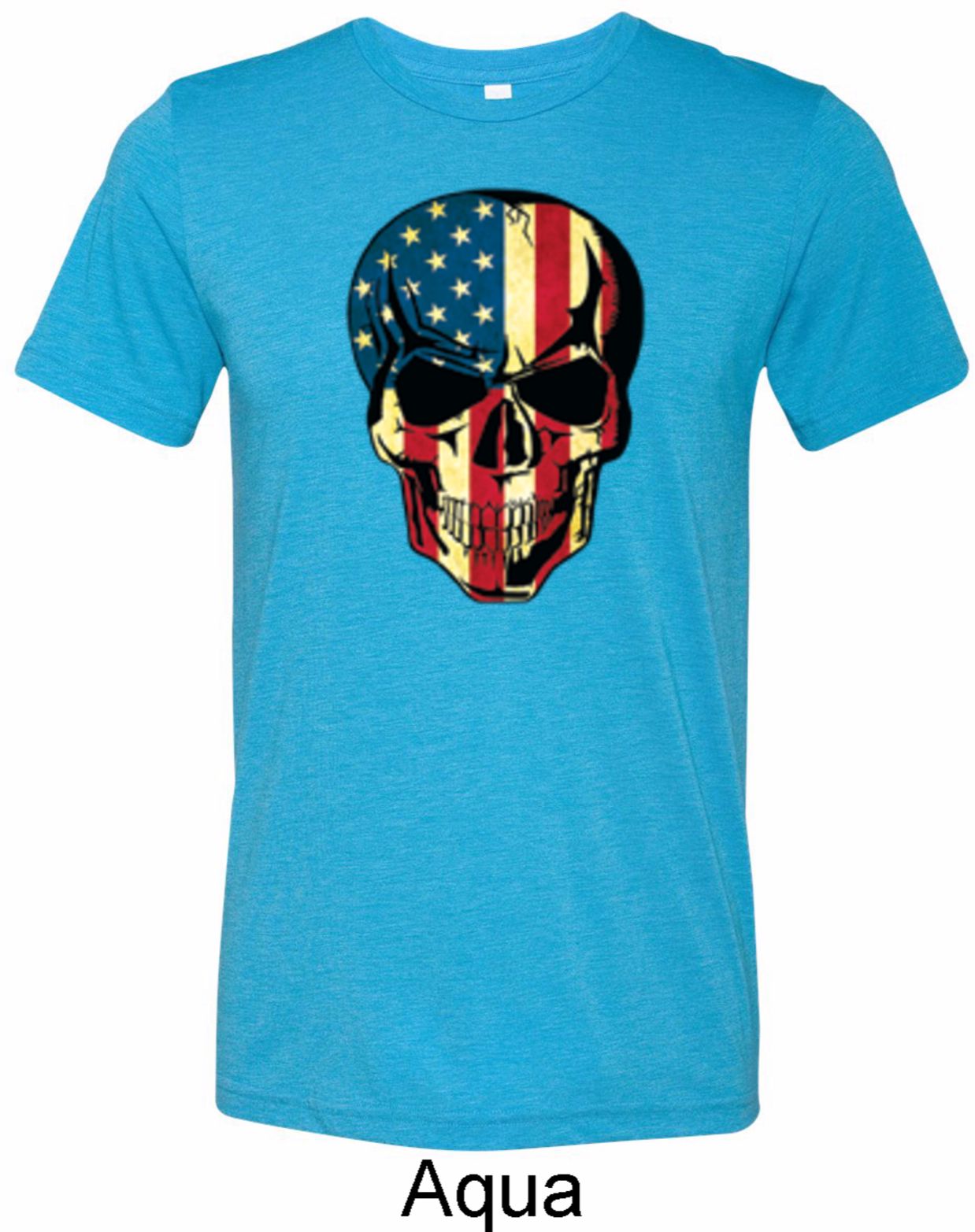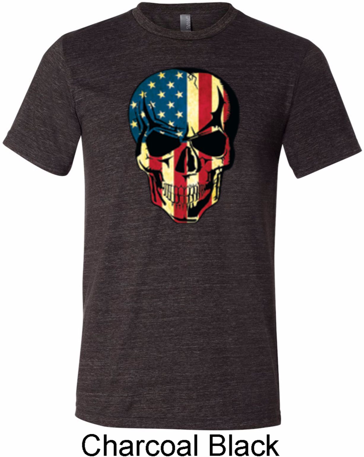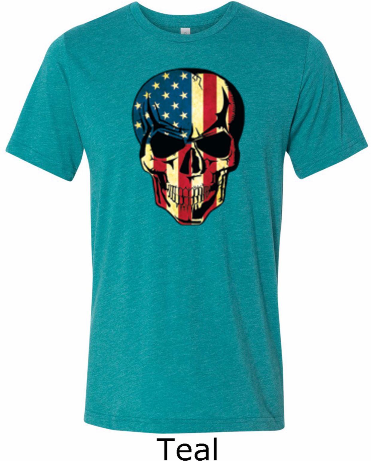 | | USA Skull Mens Tri Blend Crewneck ShirtUSA Skull Mens Tri Blend Crewneck Shirt Show your love for the United States of America while wearing our USA Skull design A cotton/poly/rayon blend Available in Small, Medium, Large, XL & 2XL Also available in colors Aqua, Athletic Grey, Berry, Blue, Brown, Charcoal Black, Clay, Emerald, Green, Grey, Maroon, Navy, Oatmeal, Orange, Purple, Red, Solid Black, Teal, Royal, and White Fleck |
