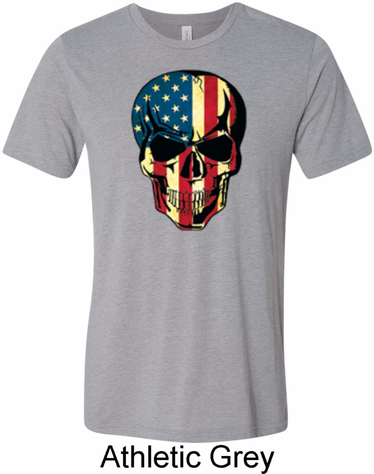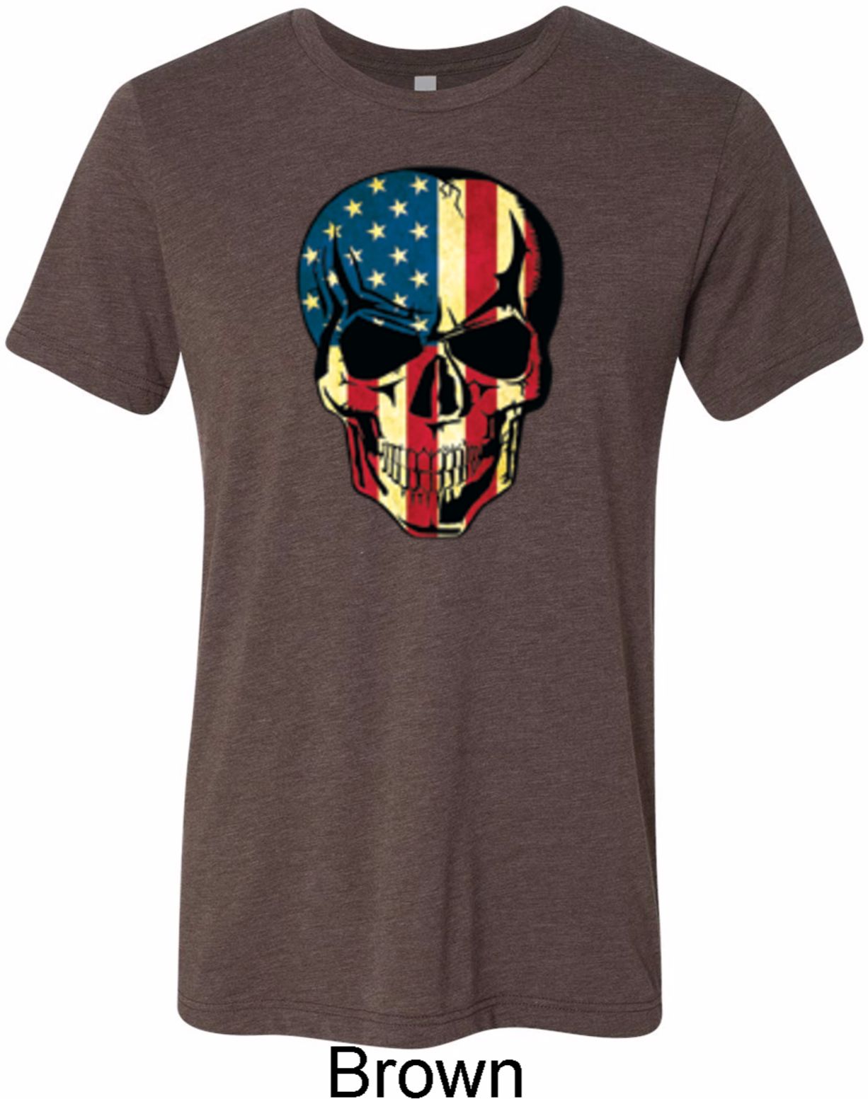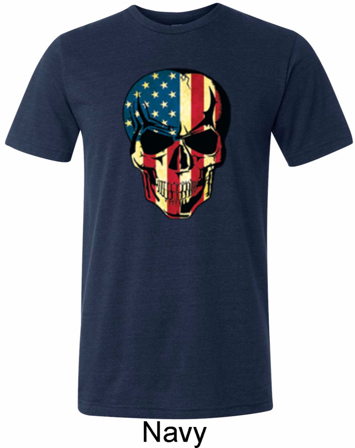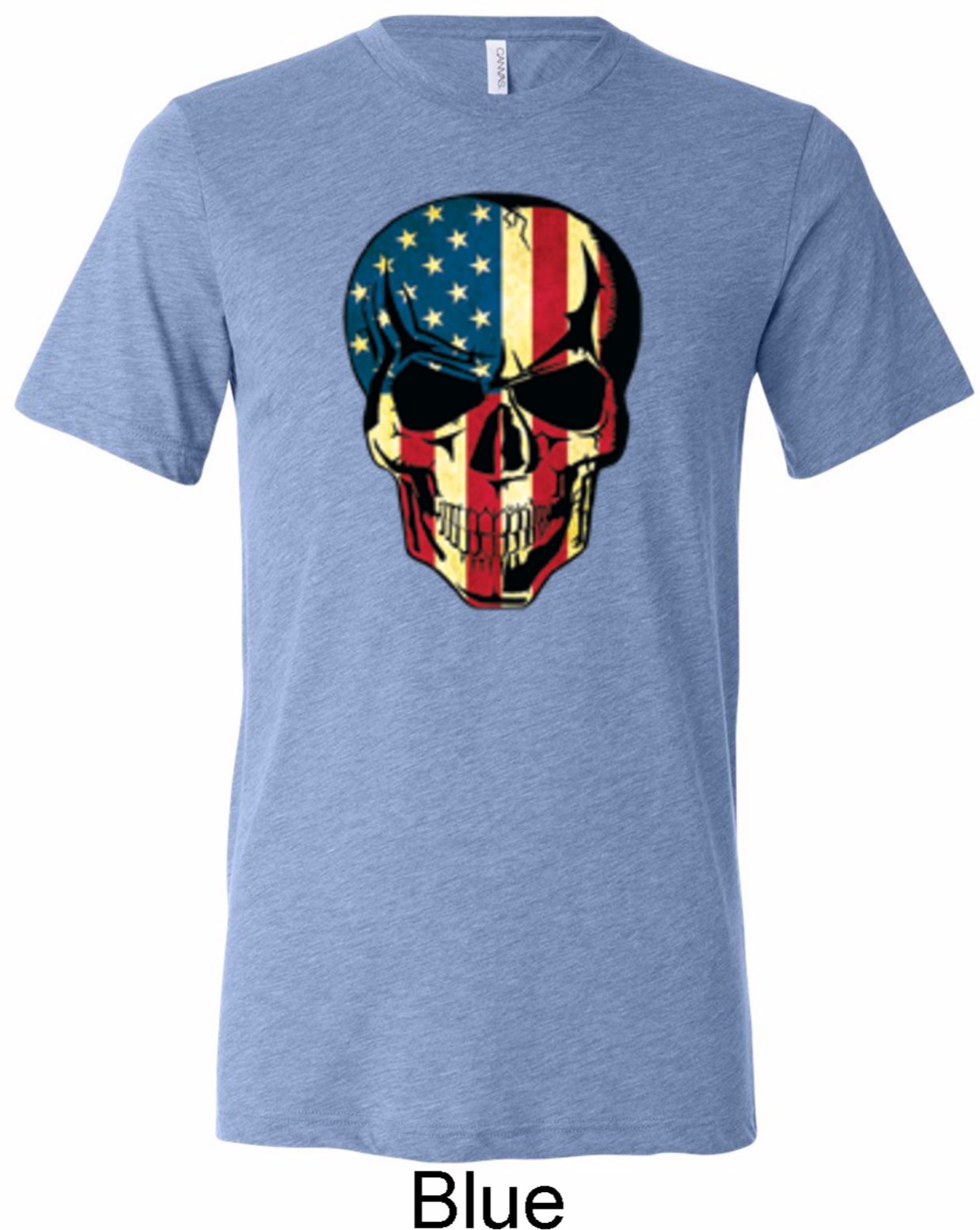 | | USA Skull Mens Tri Blend Crewneck ShirtUSA Skull Mens Tri Blend Crewneck Shirt Show your love for the United States of America while wearing our USA Skull design A cotton/poly/rayon blend Available in Small, Medium, Large, XL & 2XL Also available in colors Aqua, Athletic Grey, Berry, Blue, Brown, Charcoal Black, Clay, Emerald, Green, Grey, Maroon, Navy, Oatmeal, Orange, Purple, Red, Solid Black, Teal, Royal, and White Fleck |