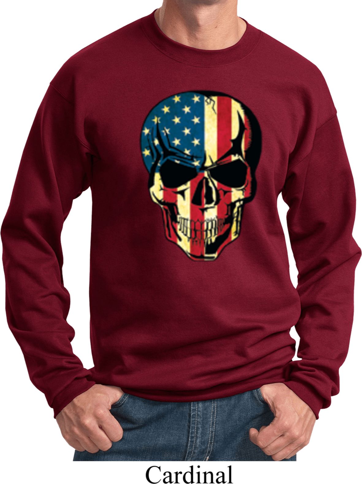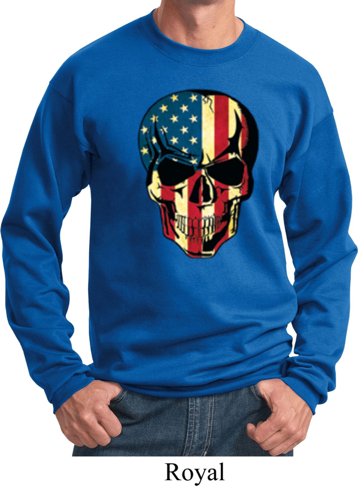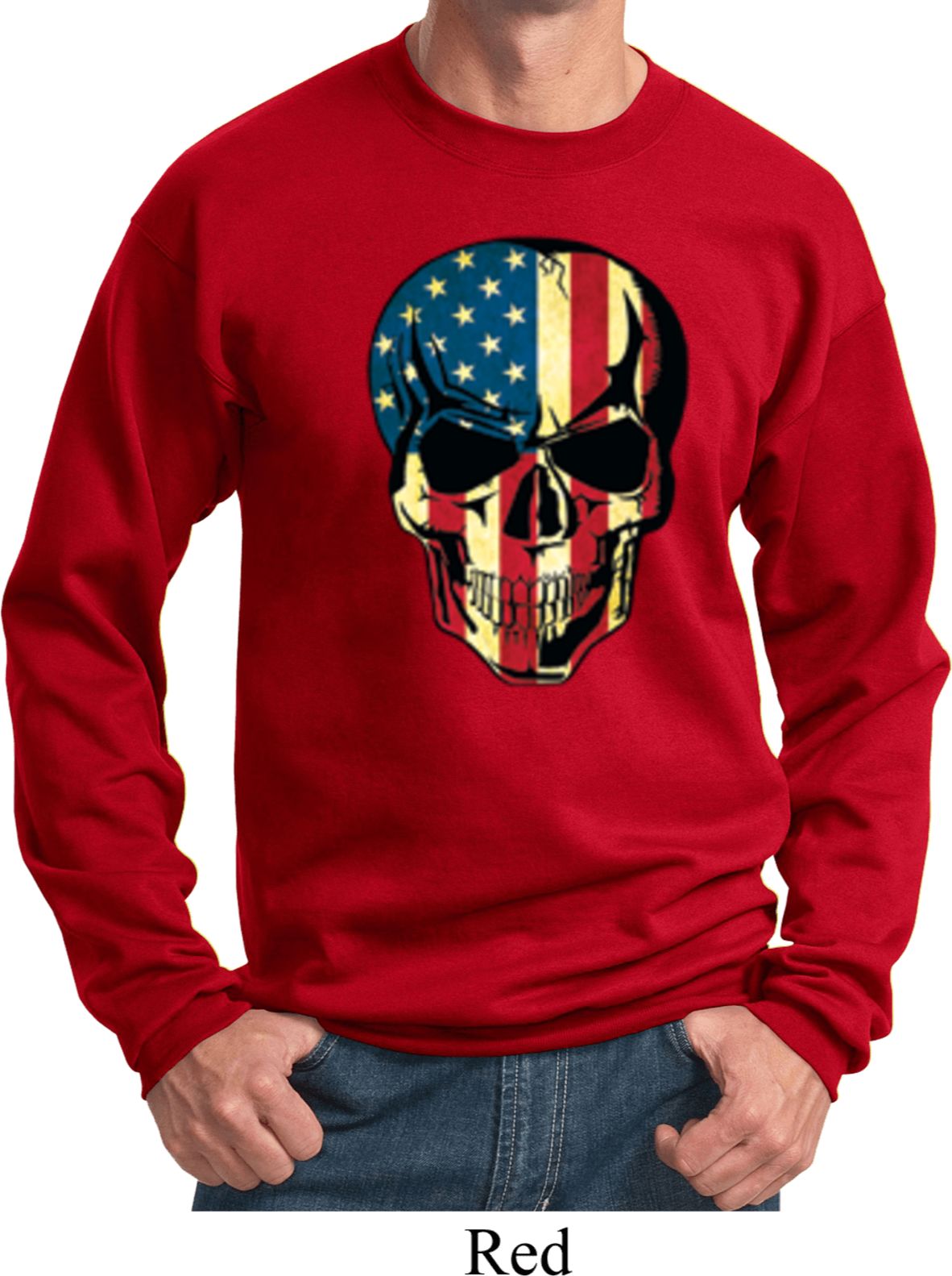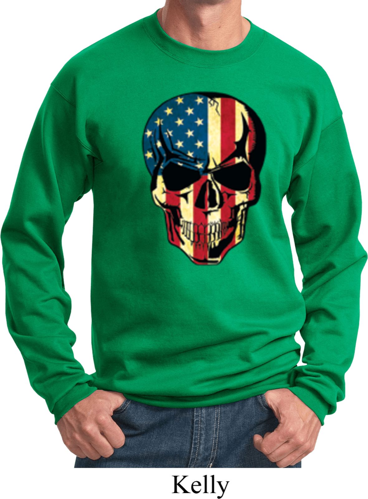 | | USA Skull SweatshirtUSA Skull Sweatshirt Show your love for the United States of America while wearing our USA Skull design A cotton/poly blend Available in Small, Medium, Large, XL, 2XL, 3XL & 4XL Also available in colors Ash, Athletic Heather, Black, Cardinal, Chocolate, Dark Green, Gold, Kelly, Maroon, Navy, Orange, Pale Pink, Purple, Red, Royal, Safety Green, and White ![]() |