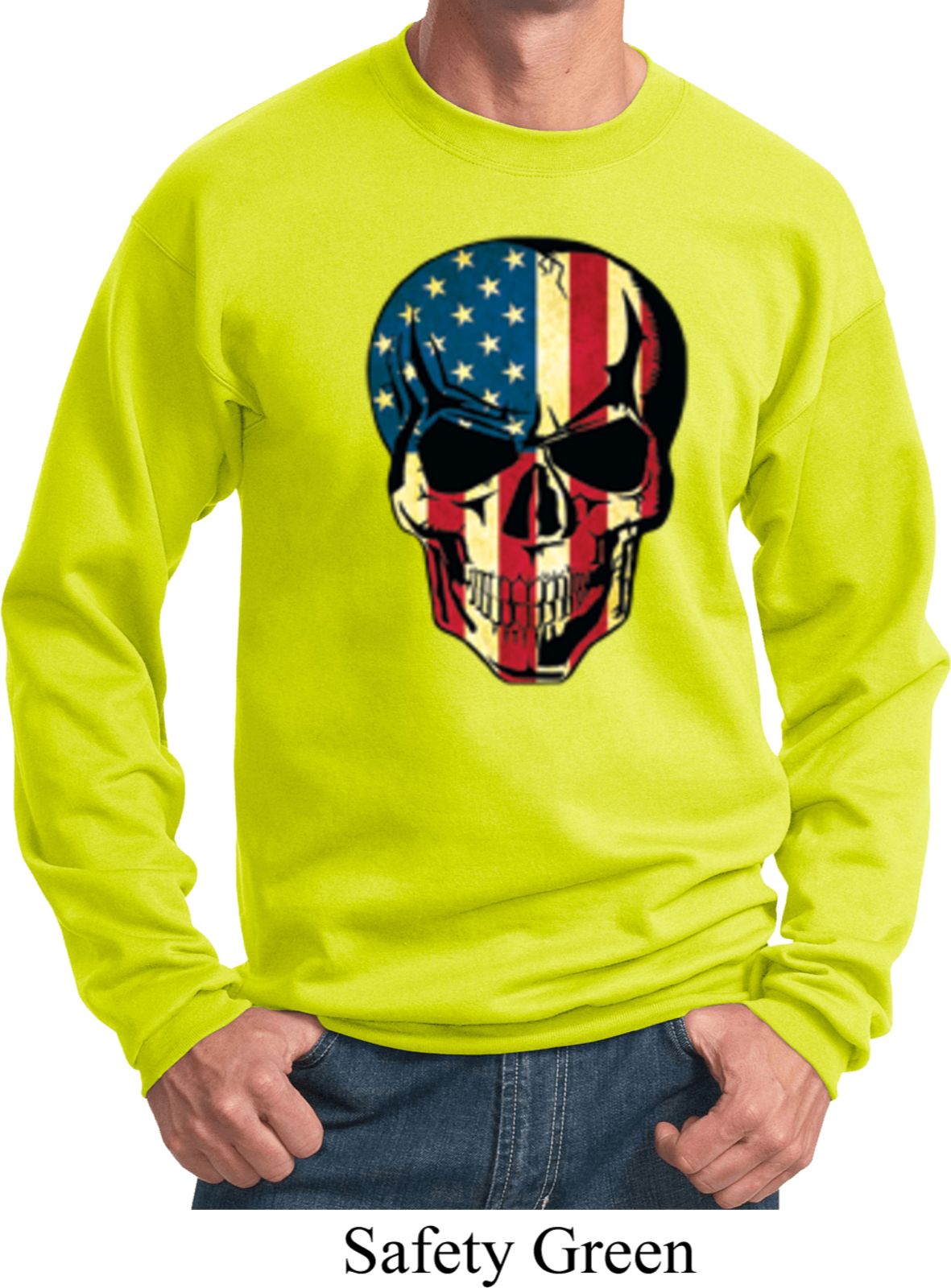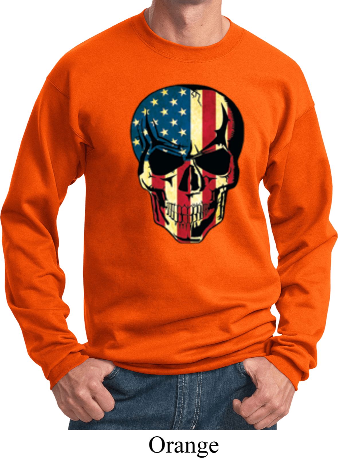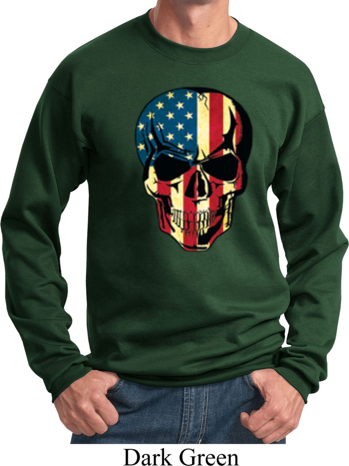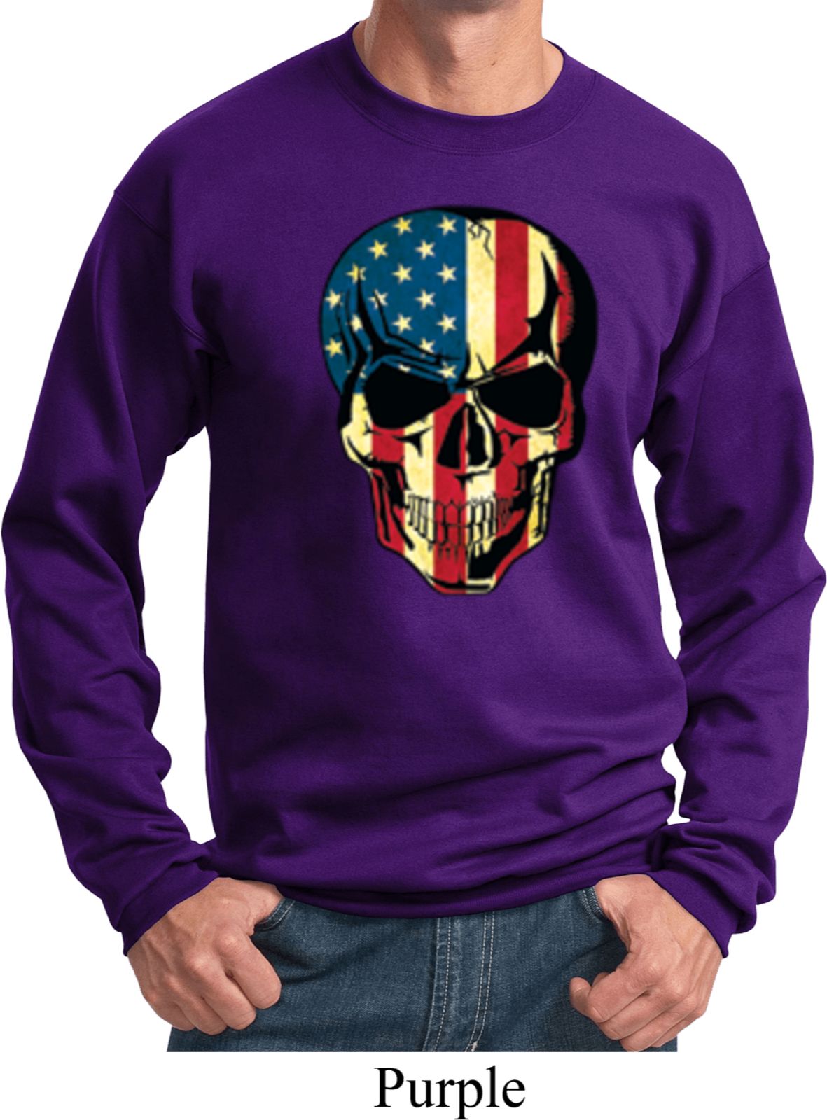 | | USA Skull SweatshirtUSA Skull Sweatshirt Show your love for the United States of America while wearing our USA Skull design A cotton/poly blend Available in Small, Medium, Large, XL, 2XL, 3XL & 4XL Also available in colors Ash, Athletic Heather, Black, Cardinal, Chocolate, Dark Green, Gold, Kelly, Maroon, Navy, Orange, Pale Pink, Purple, Red, Royal, Safety Green, and White ![]() |
