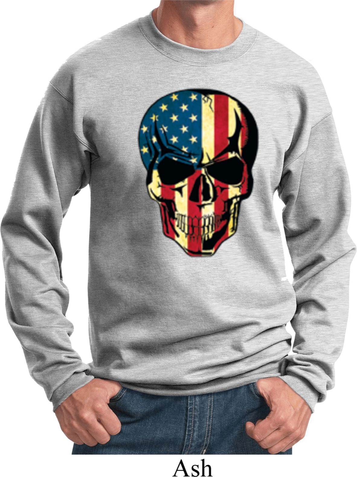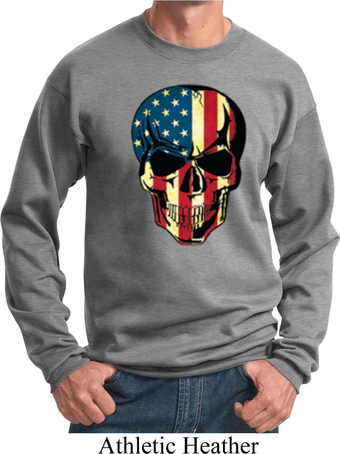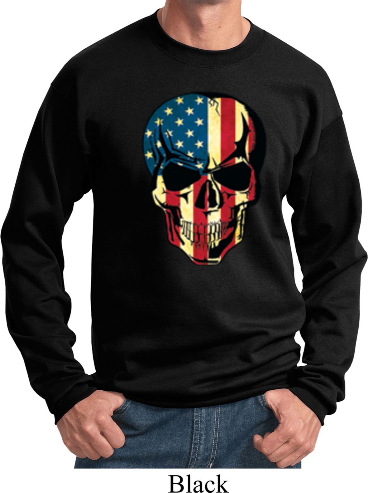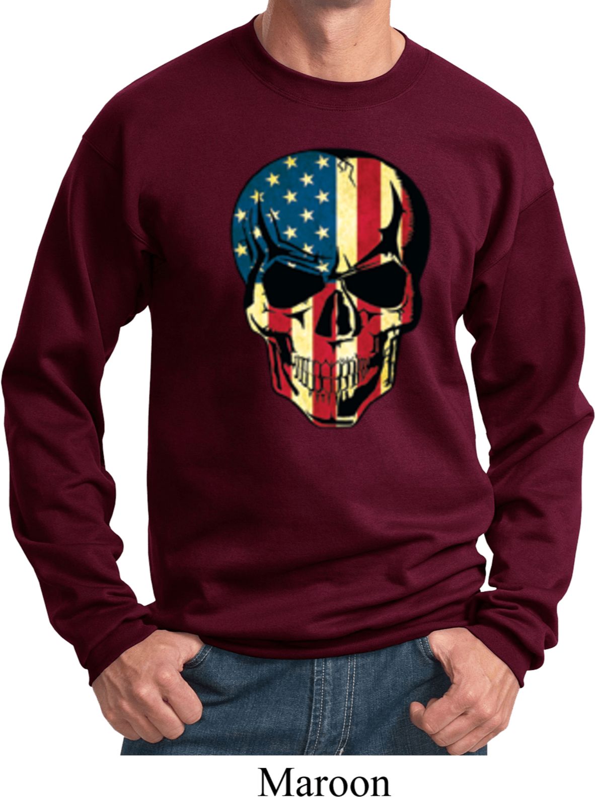 | | USA Skull SweatshirtUSA Skull Sweatshirt Show your love for the United States of America while wearing our USA Skull design A cotton/poly blend Available in Small, Medium, Large, XL, 2XL, 3XL & 4XL Also available in colors Ash, Athletic Heather, Black, Cardinal, Chocolate, Dark Green, Gold, Kelly, Maroon, Navy, Orange, Pale Pink, Purple, Red, Royal, Safety Green, and White ![]() |