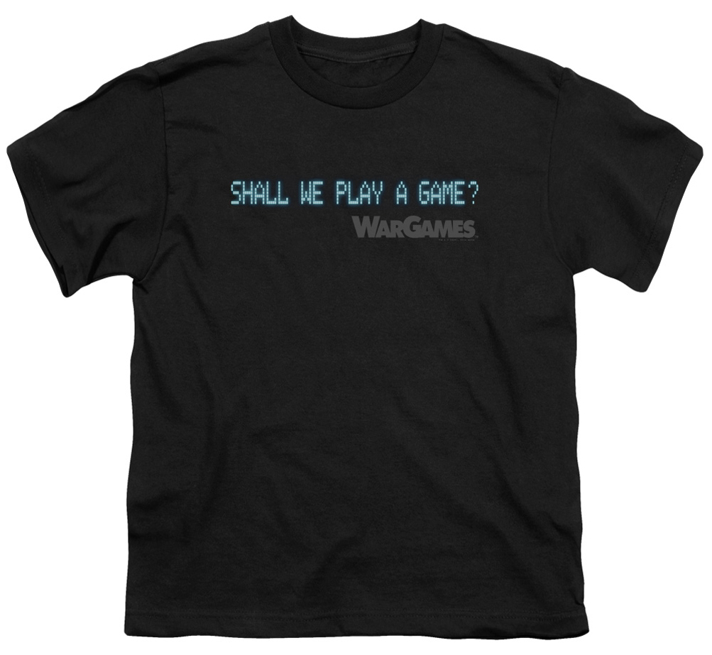 | | WarGames Kids Shirt Shall We Play A Game? Black T-ShirtWarGames Kids Shirt Shall We Play A Game? Black T-Shirt This WarGames kids shirt features features Shall we play a game? Even if not, there’s no escaping “Joshua”, the computer that nearly causes a global “game over” in the form of World War III in the classic 80s movie WarGames. Everyone will immediately know that you are fan of WarGames each time you wear this WarGames t-shirt! Buy yours today! 100% Cotton, Pre-Shrunk And Machine Washable Officially Licensed Available in Small(6-8), Medium(10-12), Large(14-16), & XL(18-20), Also available in Toddler sizes: Small (4), Medium (5/6), & Large (7) ![]() |