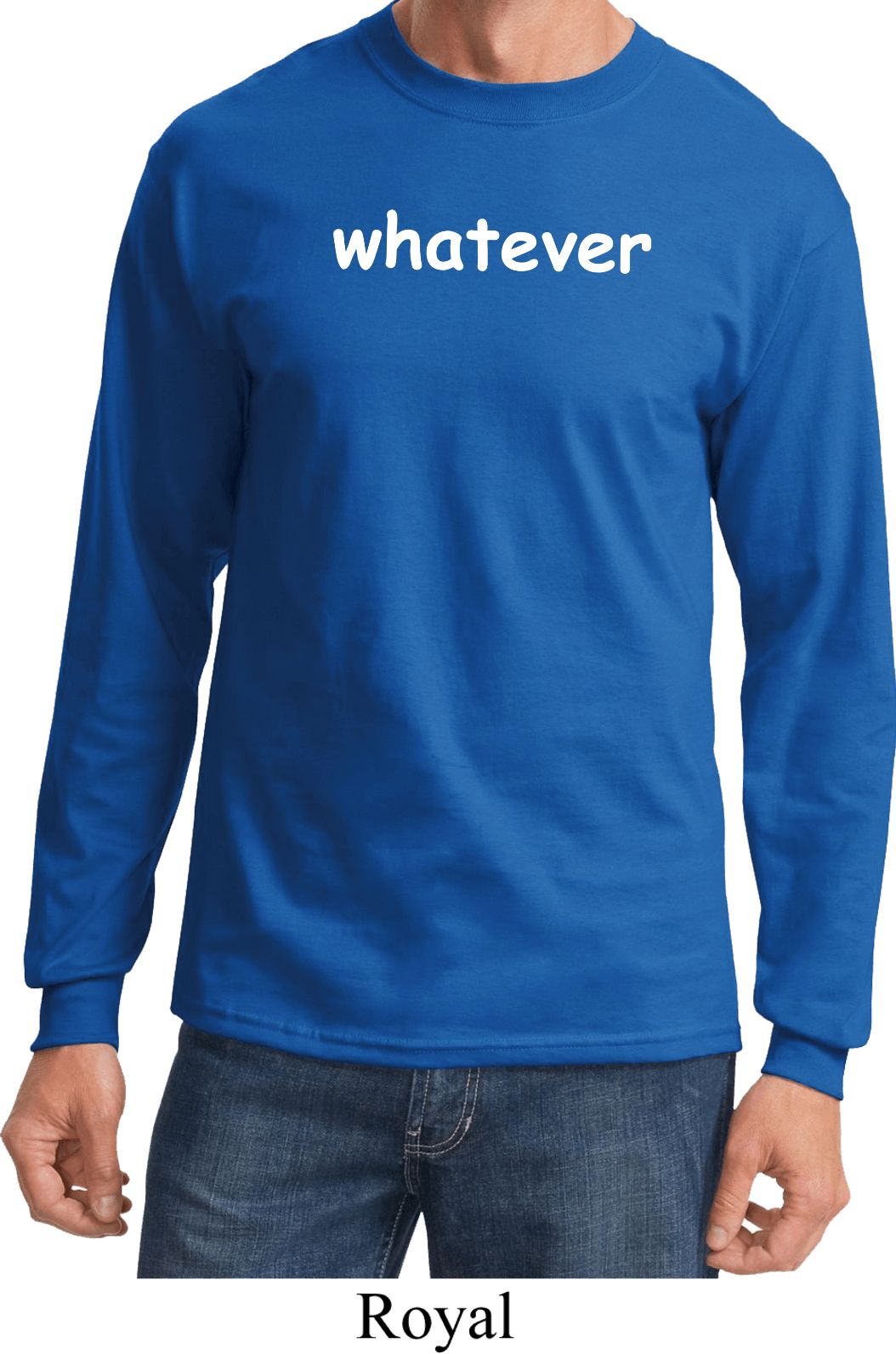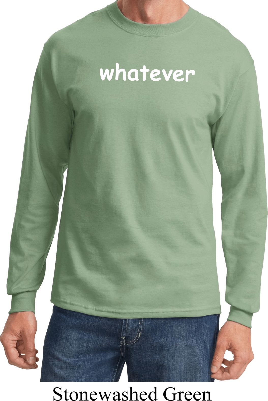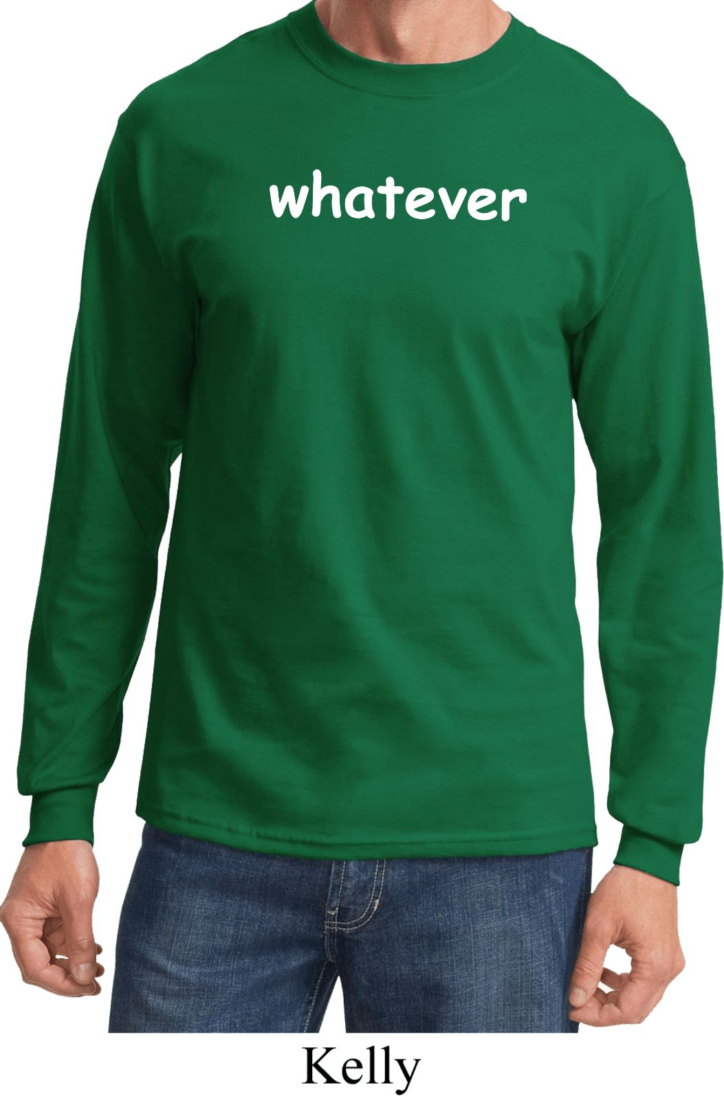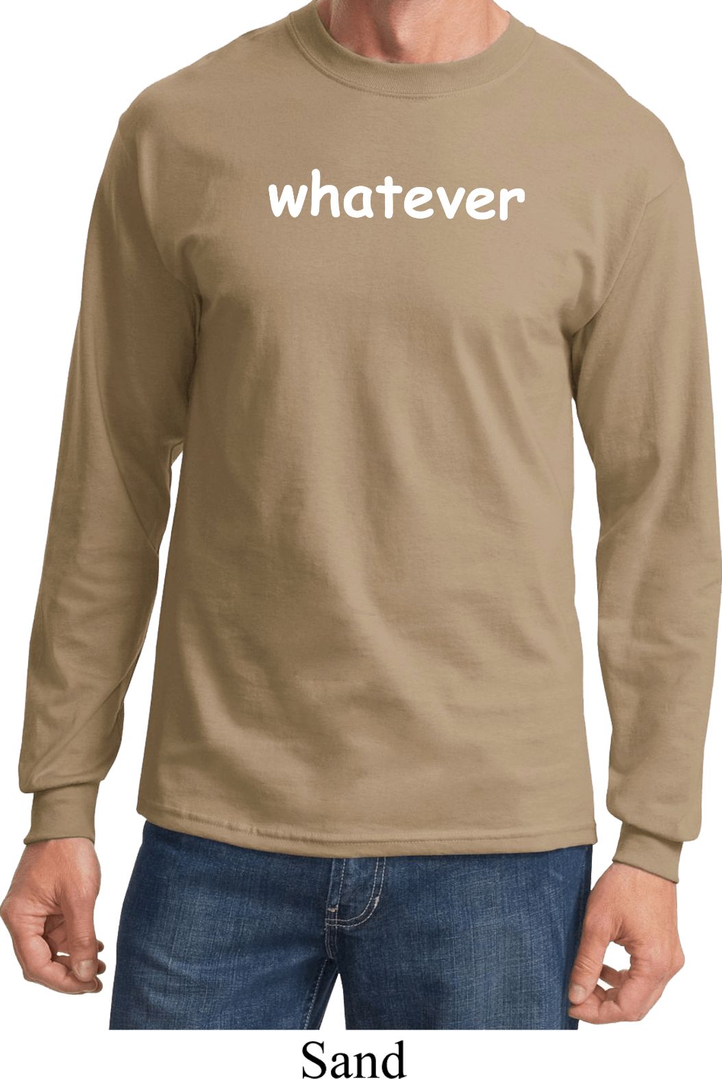| | Whatever Long Sleeve ShirtA 100% cotton mens long sleeve shirt featuring Whatever. (Athletic Heather is made with a blend of cotton/poly) Perfect for all who use the popular saying. Available in sizes Small through 4XL. Machine wash cold with like colors; dry low heat. ![]() |