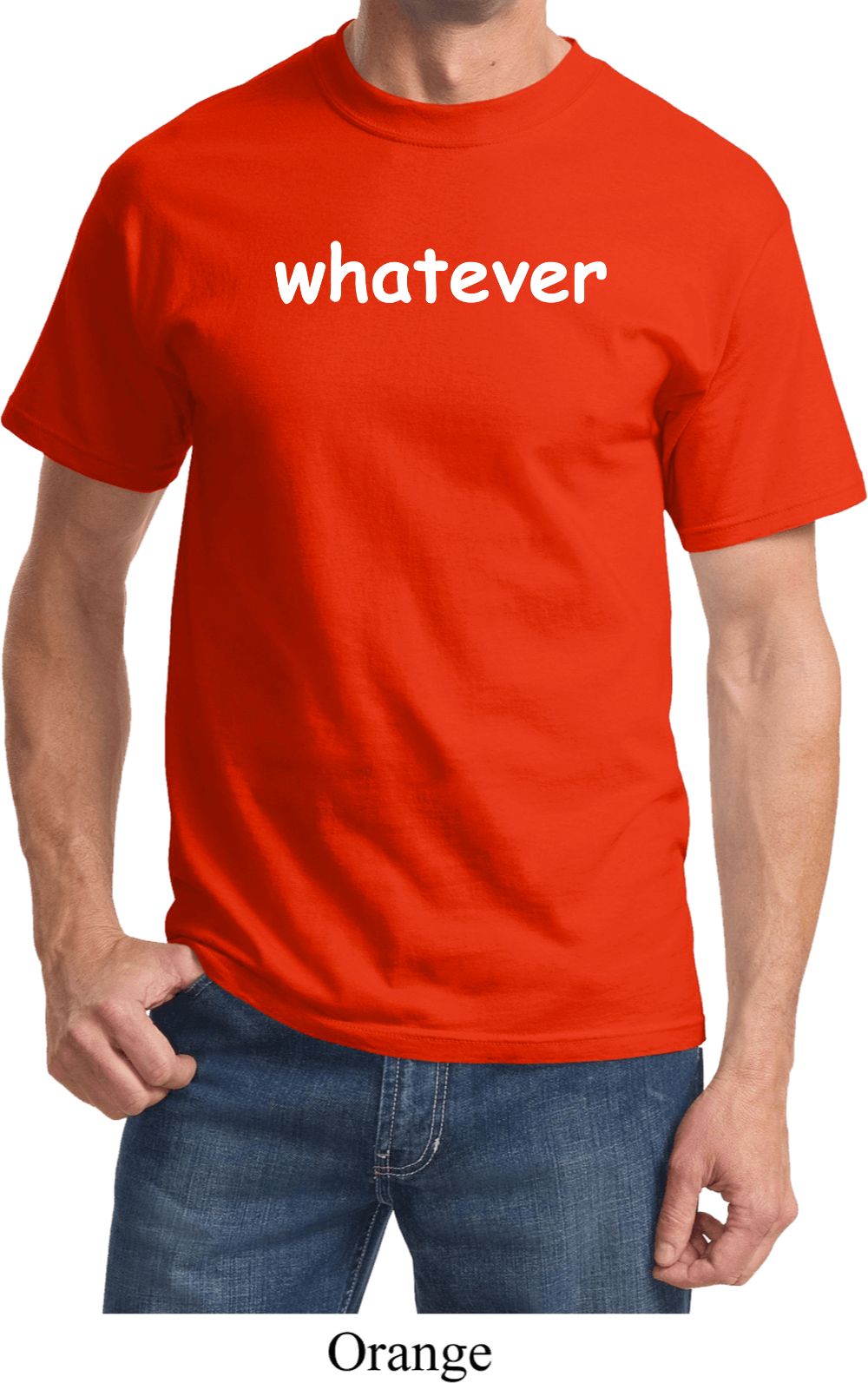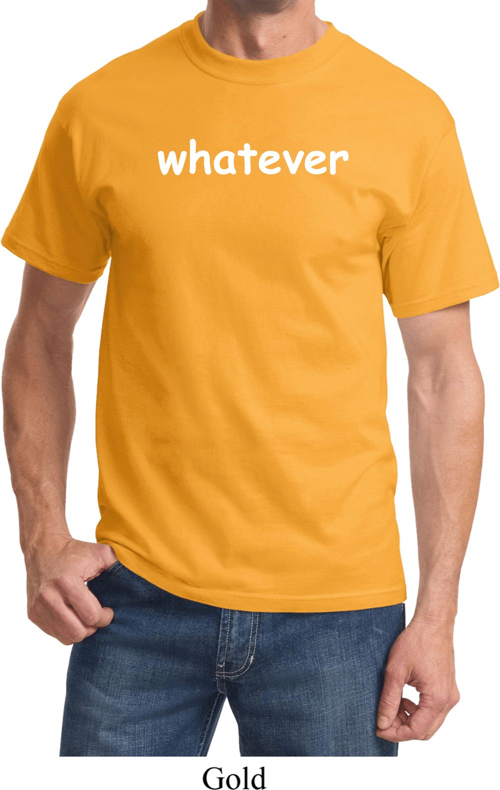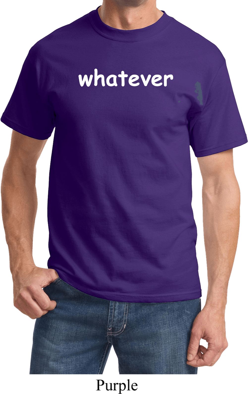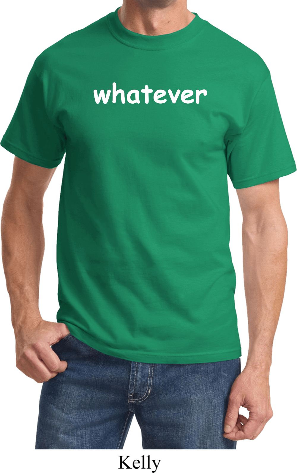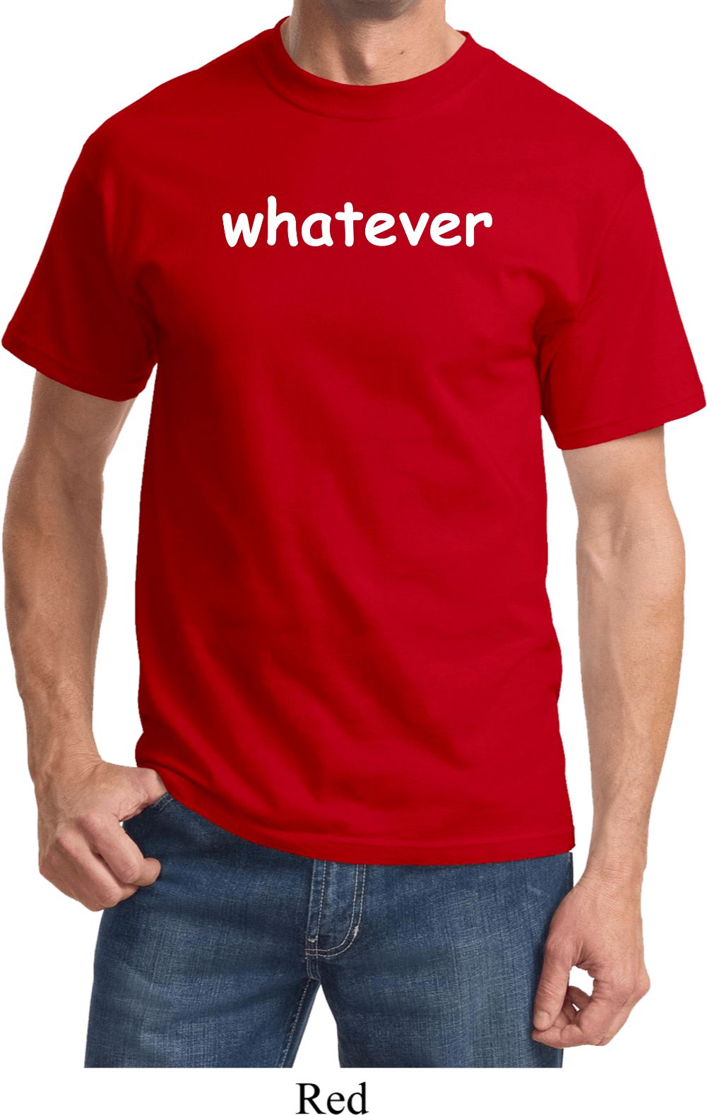 A 100% cotton mens tee featuring Whatever. Perfect for all who use the popular saying. Available in sizes Small through 6XL. Machine wash cold with like colors; dry low heat.