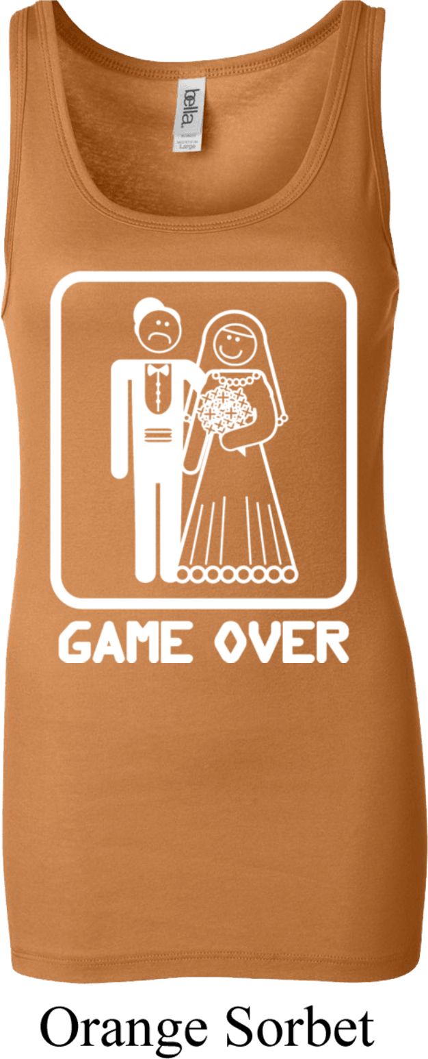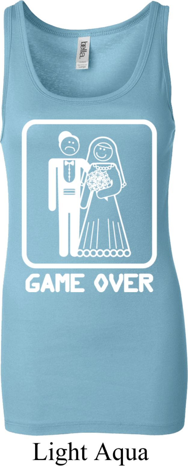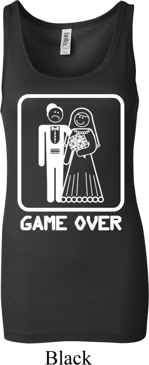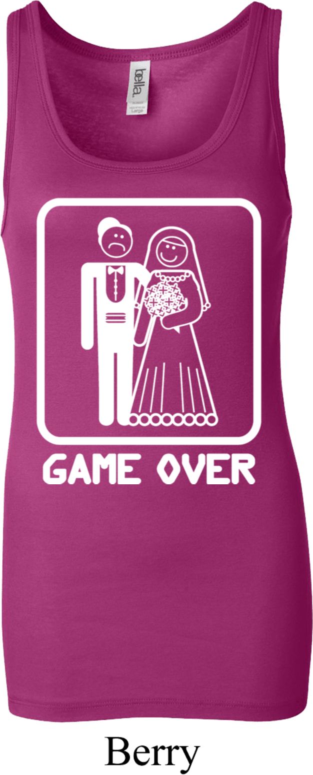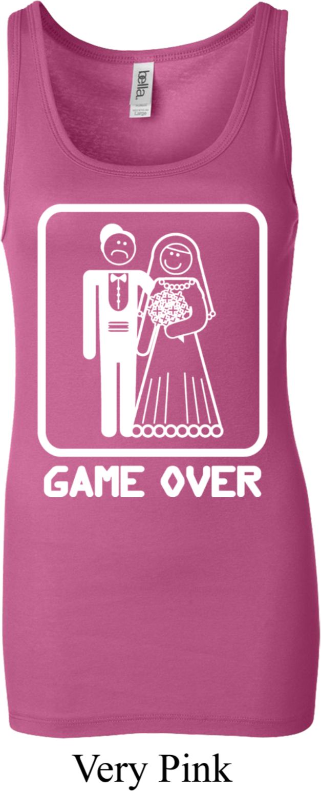 | | White Game Over Ladies Longer Length Tank TopWhite Game Over Ladies Longer Length Tank Top A perfect gift for our newlyweds A cotton/spandex blend Available in Ladies Small, Ladies Medium, Ladies Large, Ladies XL & Ladies 2XL Also available in colors Berry, Black, Light Aqua, Maroon, Midnight, Orange Sorbet, Purple, Red, Royal, Teal, and Very Pink ![]() |