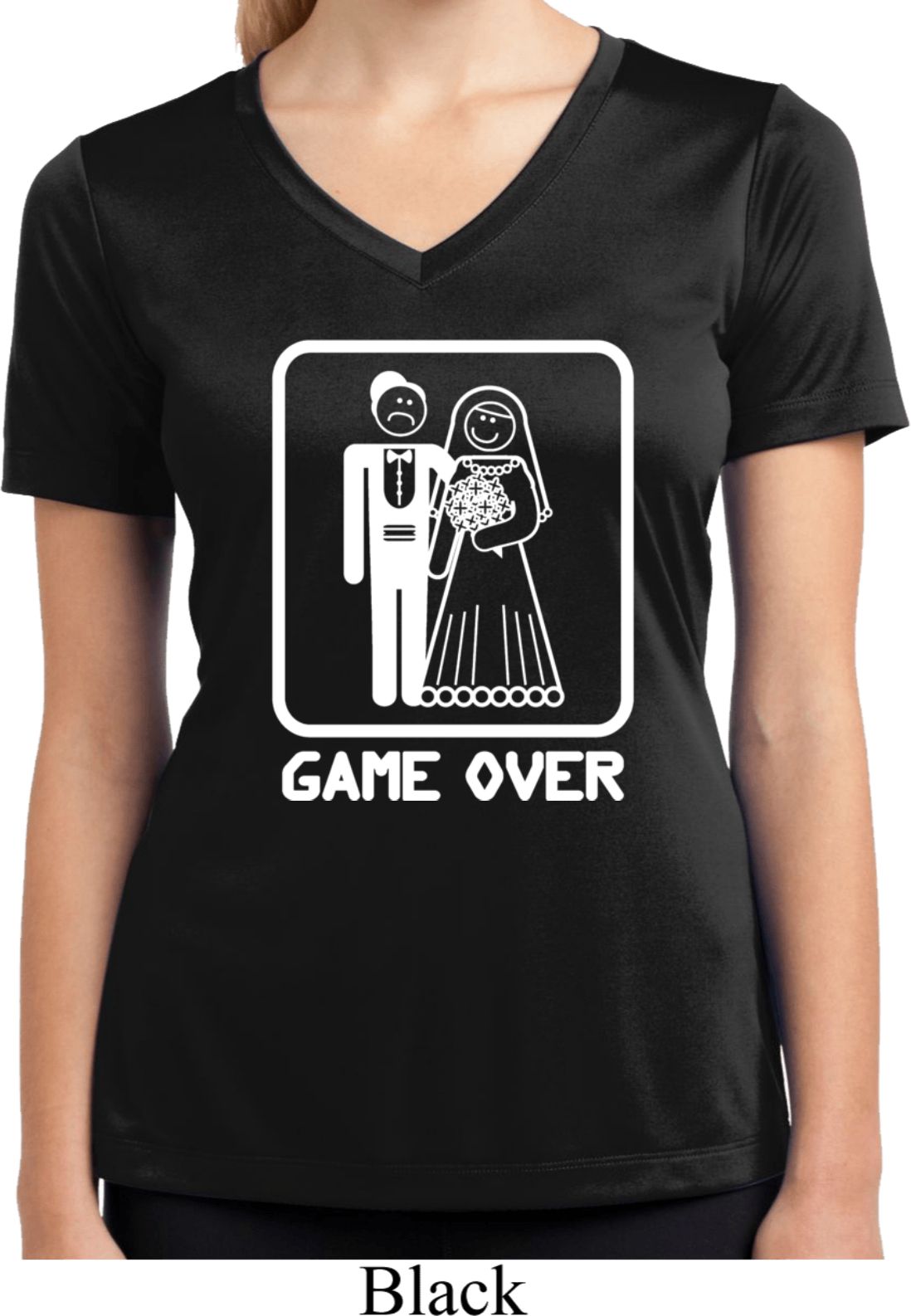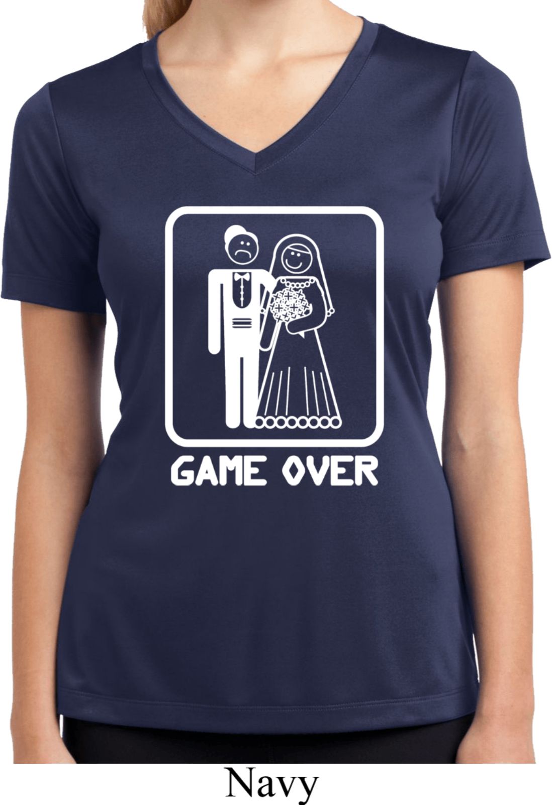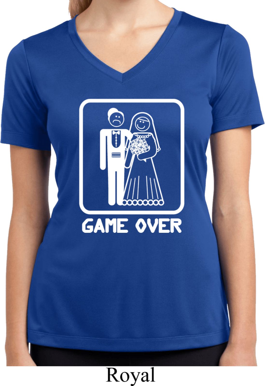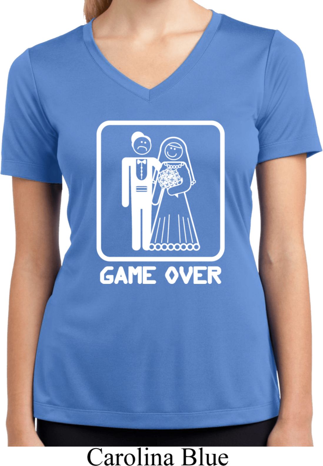 | | White Game Over Ladies Moisture Wicking V-neck ShirtWhite Game Over Ladies Moisture Wicking V-neck Shirt A perfect gift for our newlyweds 100% polyester Available in Ladies Small, Ladies Medium, Ladies Large, Ladies XL, Ladies 2XL & Ladies 3XL Also available in colors Black, Carolina Blue, Deep Orange, Gold, Hot Coral, Iron Grey, Navy, Pink Orchid, Pink Raspberry, Purple, Red, Royal, and Tropic Blue |