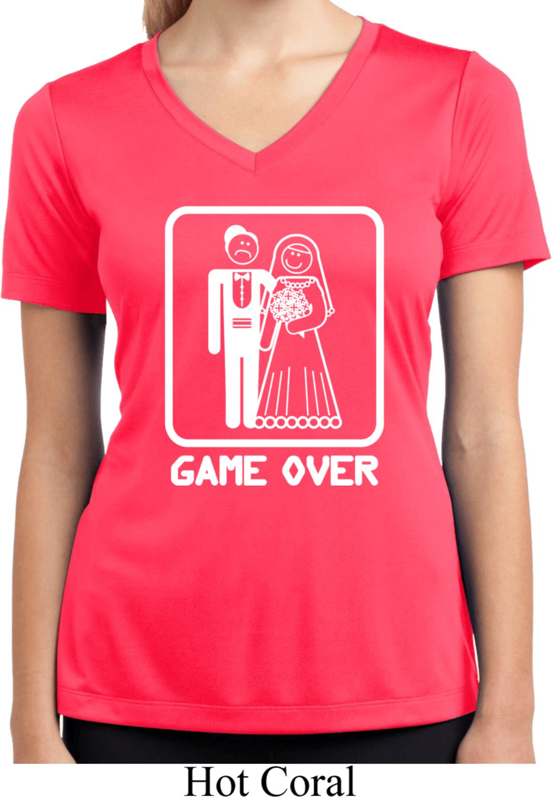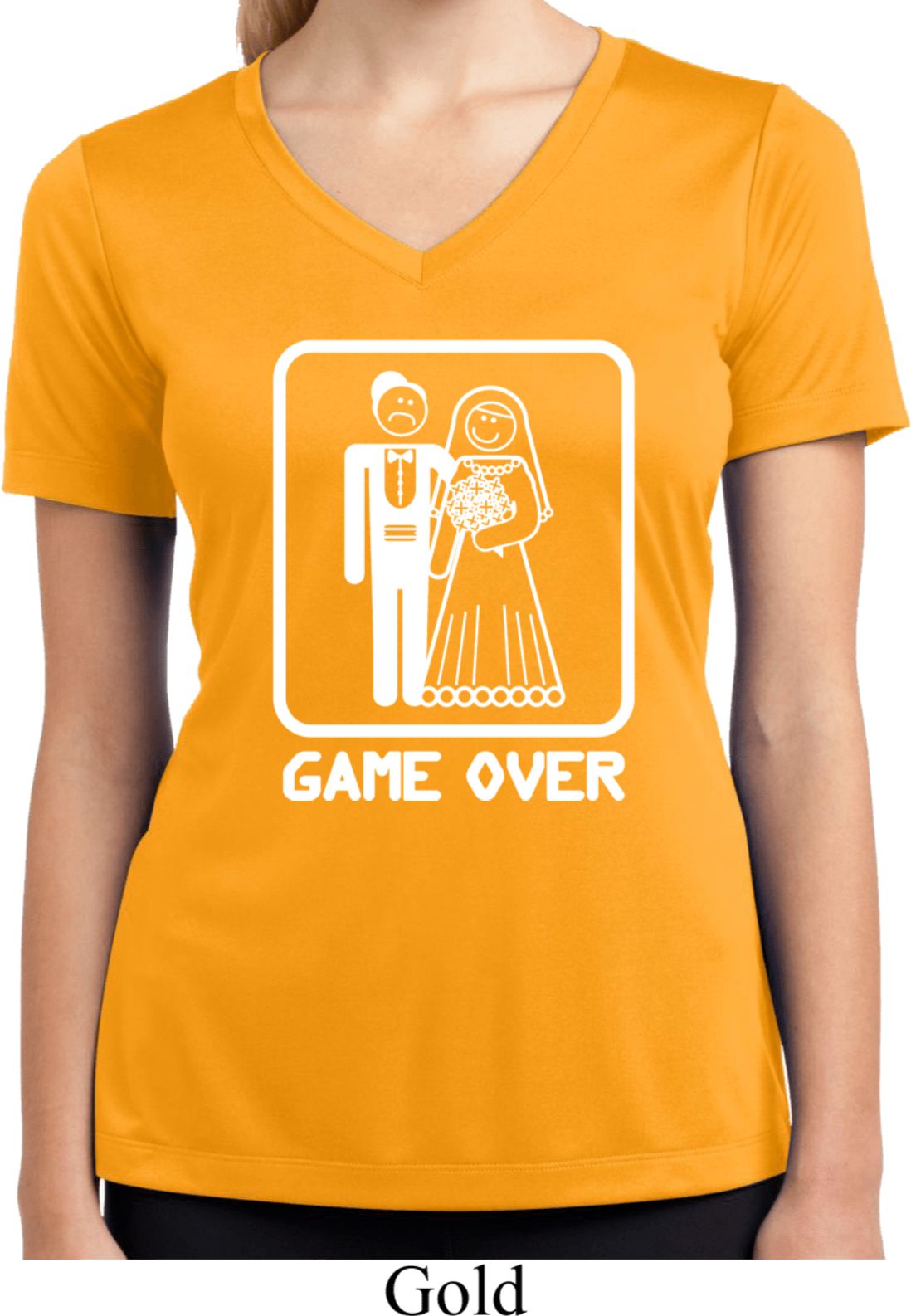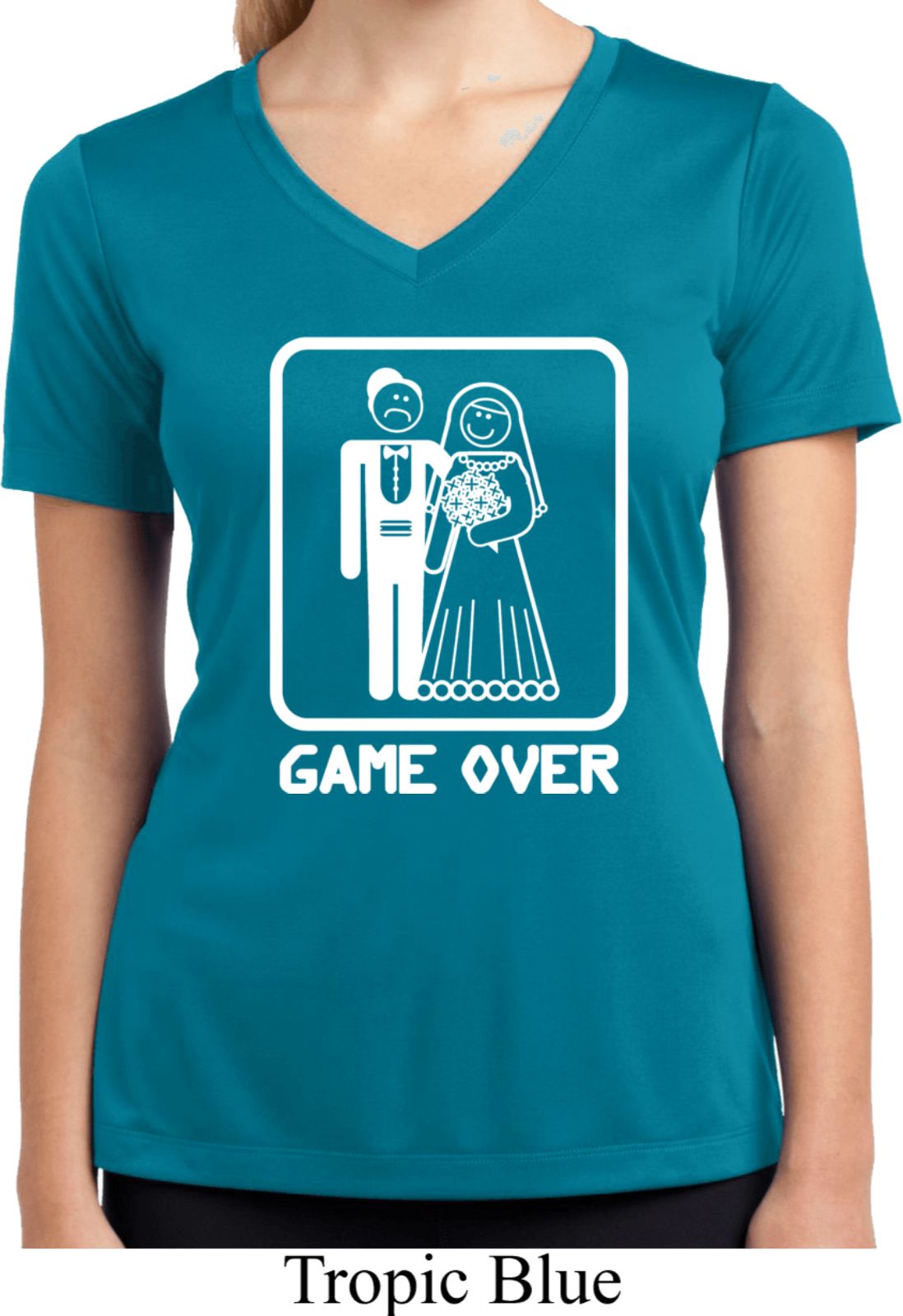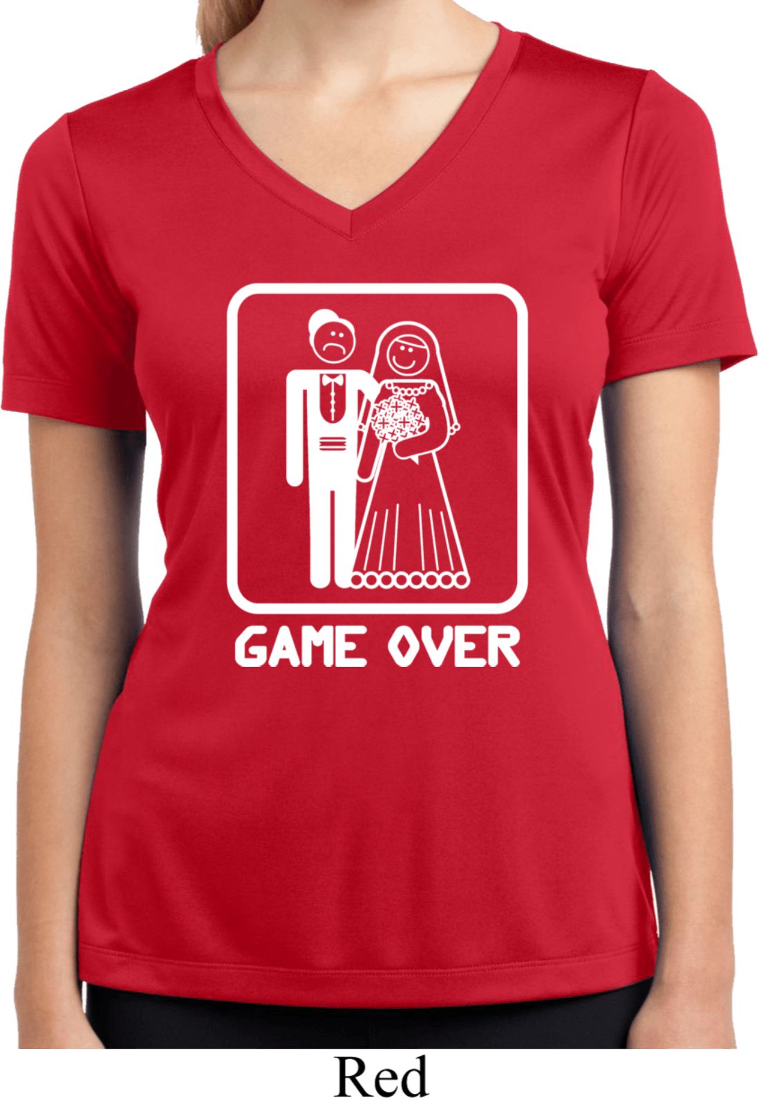 | | White Game Over Ladies Moisture Wicking V-neck ShirtWhite Game Over Ladies Moisture Wicking V-neck Shirt A perfect gift for our newlyweds 100% polyester Available in Ladies Small, Ladies Medium, Ladies Large, Ladies XL, Ladies 2XL & Ladies 3XL Also available in colors Black, Carolina Blue, Deep Orange, Gold, Hot Coral, Iron Grey, Navy, Pink Orchid, Pink Raspberry, Purple, Red, Royal, and Tropic Blue |