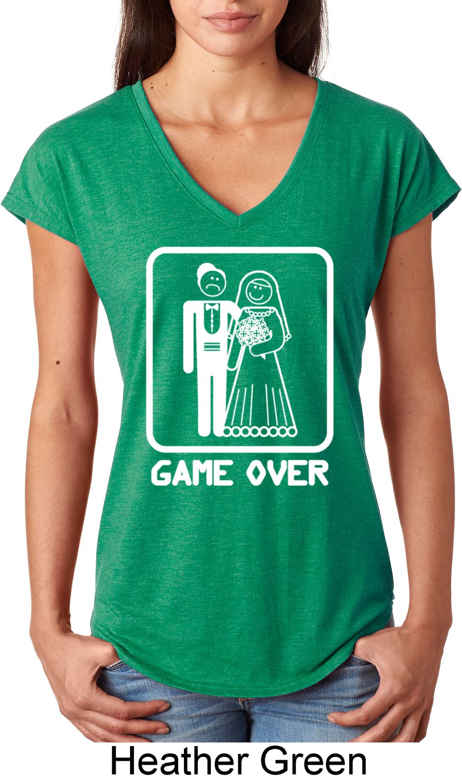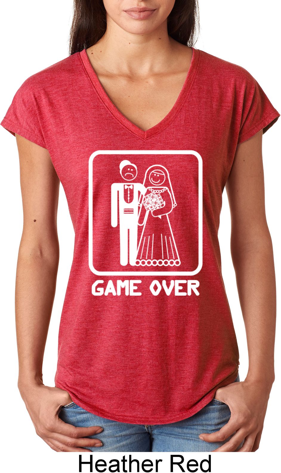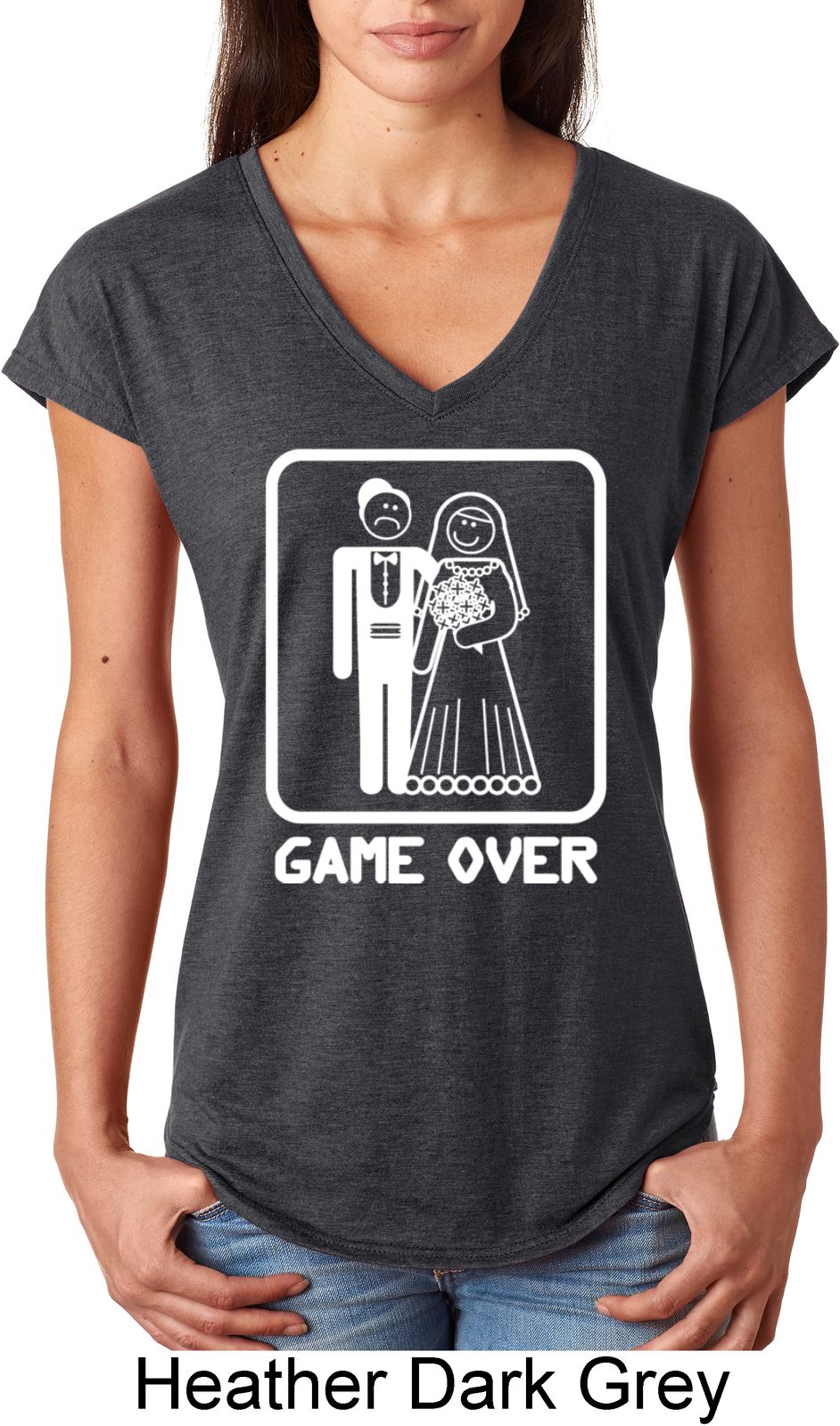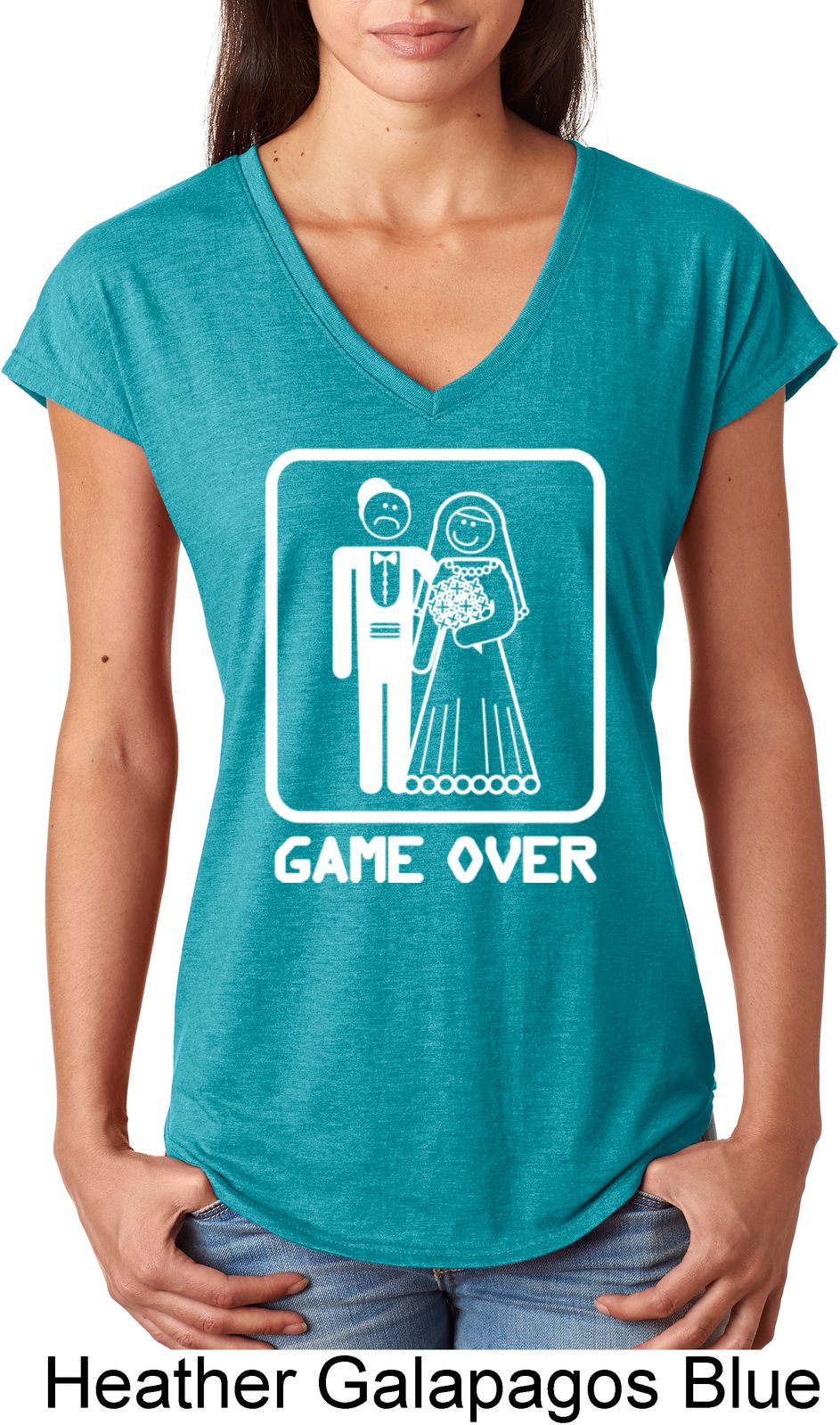 | | White Game Over Ladies Tri Blend V-Neck ShirtWhite Game Over Ladies Tri Blend V-Neck Shirt A perfect gift for our newlyweds A poly/cotton/rayon blend Available in Ladies Small, Ladies Medium, Ladies Large, Ladies XL & Ladies 2XL Also available in colors Black, Heather Aubergine, Heather Caribbean, Heather Dark Green, Heather Dark Grey, Heather Galapagos, Heather Green, Heather Grey, Heather Orange, Heather Purple, Heather Red, and Raspberry |