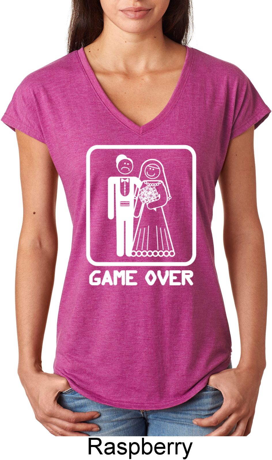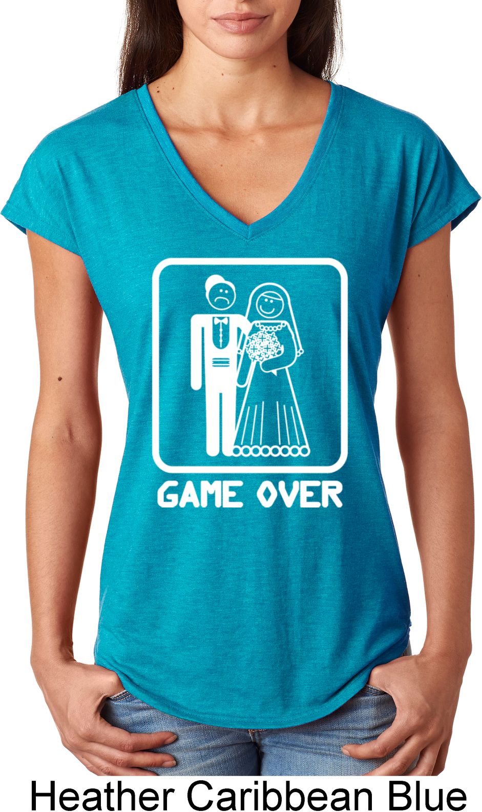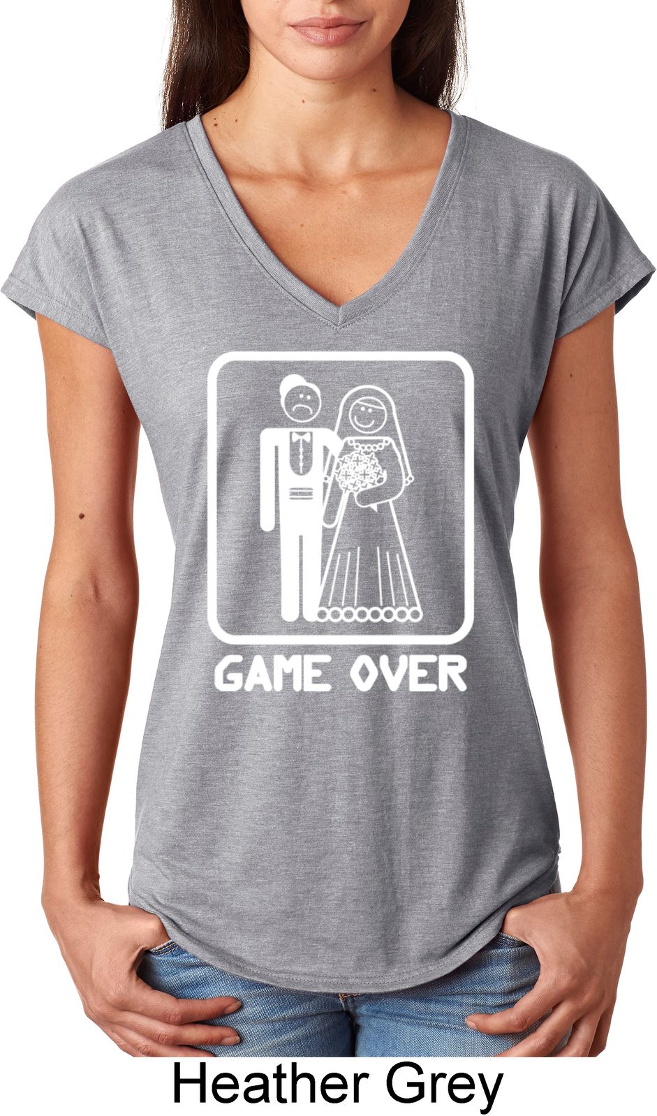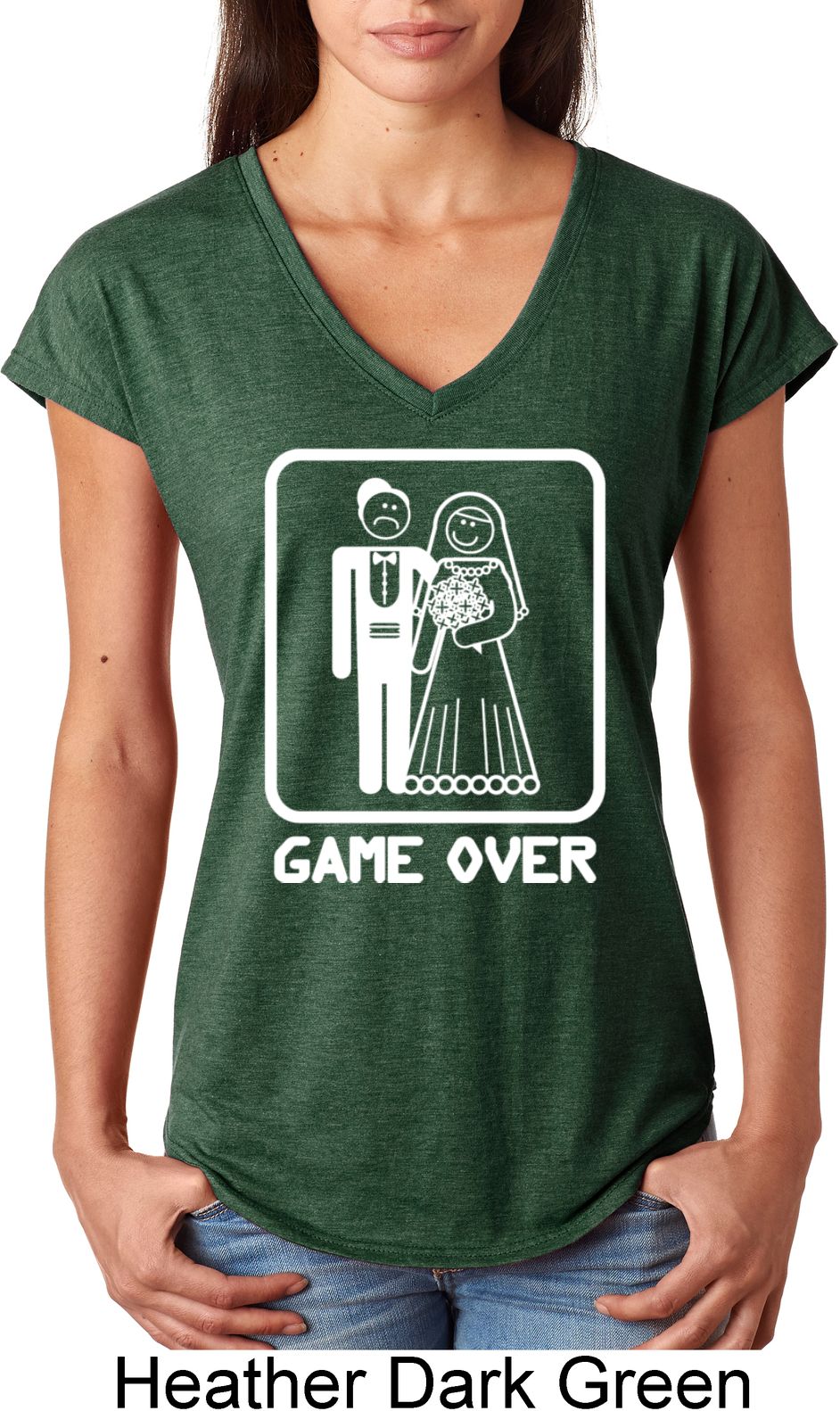 | | White Game Over Ladies Tri Blend V-Neck ShirtWhite Game Over Ladies Tri Blend V-Neck Shirt A perfect gift for our newlyweds A poly/cotton/rayon blend Available in Ladies Small, Ladies Medium, Ladies Large, Ladies XL & Ladies 2XL Also available in colors Black, Heather Aubergine, Heather Caribbean, Heather Dark Green, Heather Dark Grey, Heather Galapagos, Heather Green, Heather Grey, Heather Orange, Heather Purple, Heather Red, and Raspberry |