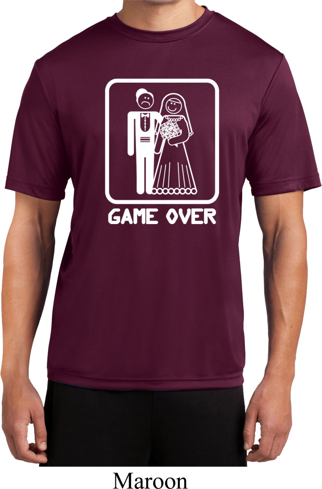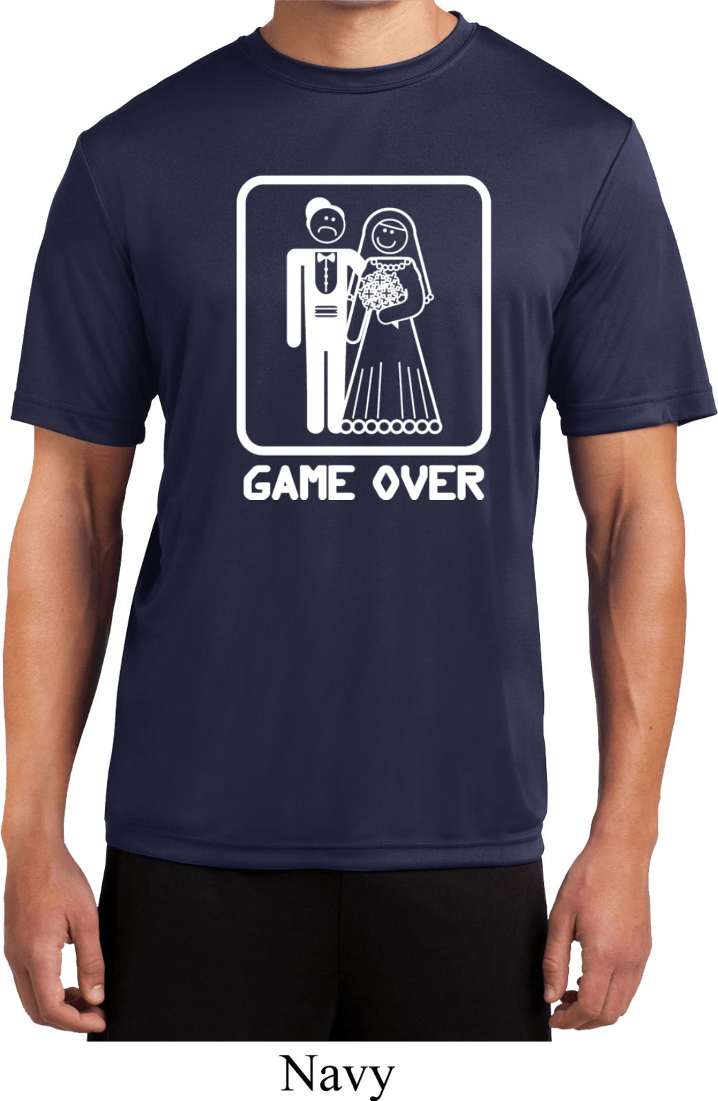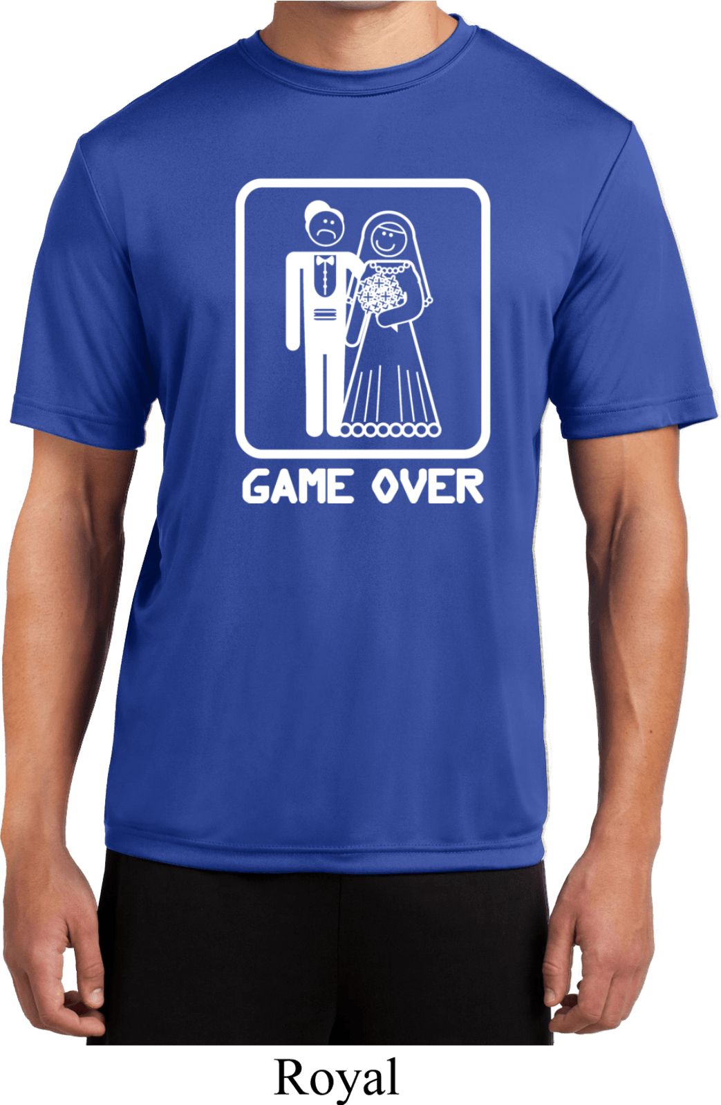 | | White Game Over Mens Moisture Wicking ShirtWhite Game Over Mens Moisture Wicking Shirt A perfect gift for our newlyweds 100% polyester Available in Small, Medium, Large, XL, 2XL, 3XL & 4XL Also available in colors Black, Cardinal, Carolina Blue, Deep Orange, Forest, Gold, Kelly, Maroon, Navy, Purple, Red, Royal, and Tropic Blue |