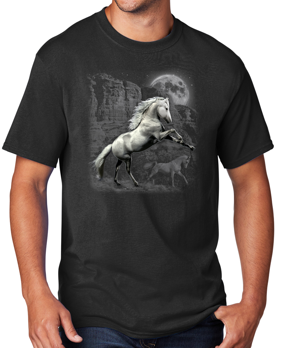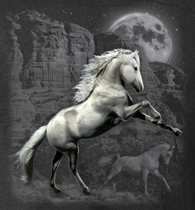 A spectacular white horse shows it's beauty in the shadow of a full moon
