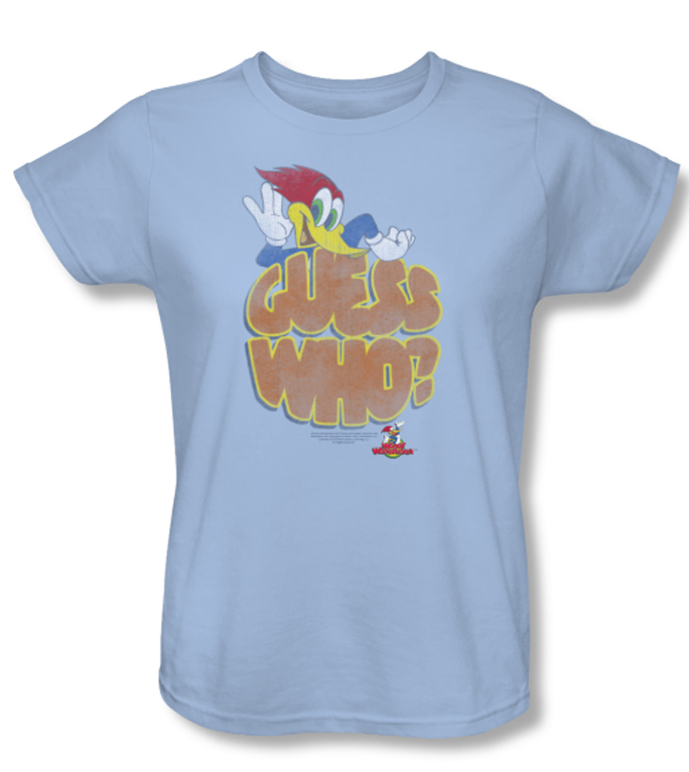Woody Woodpecker Ladies Shirt Guess Who Light Blue Tee T-Shirt