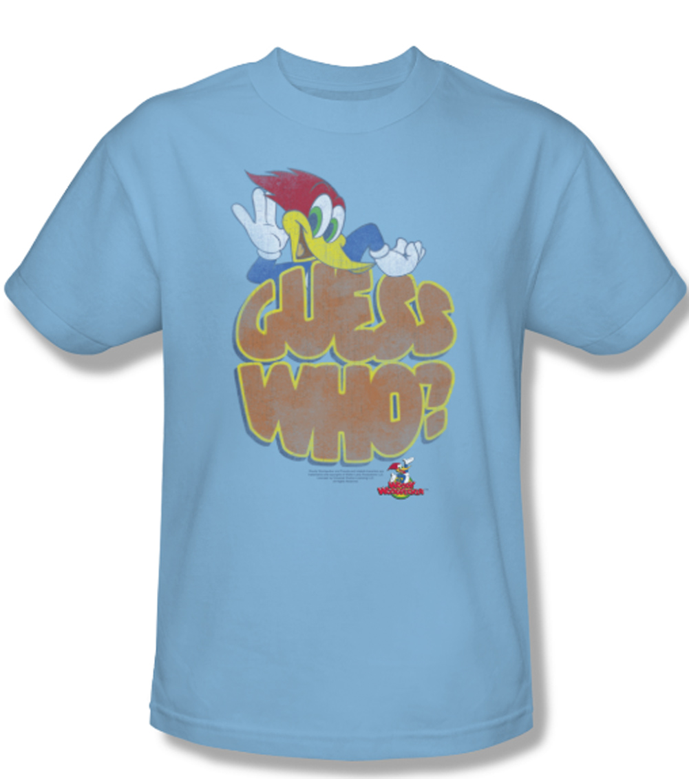 Woody Woodpecker Shirt Guess Who Adult Light Blue Tee T-Shirt