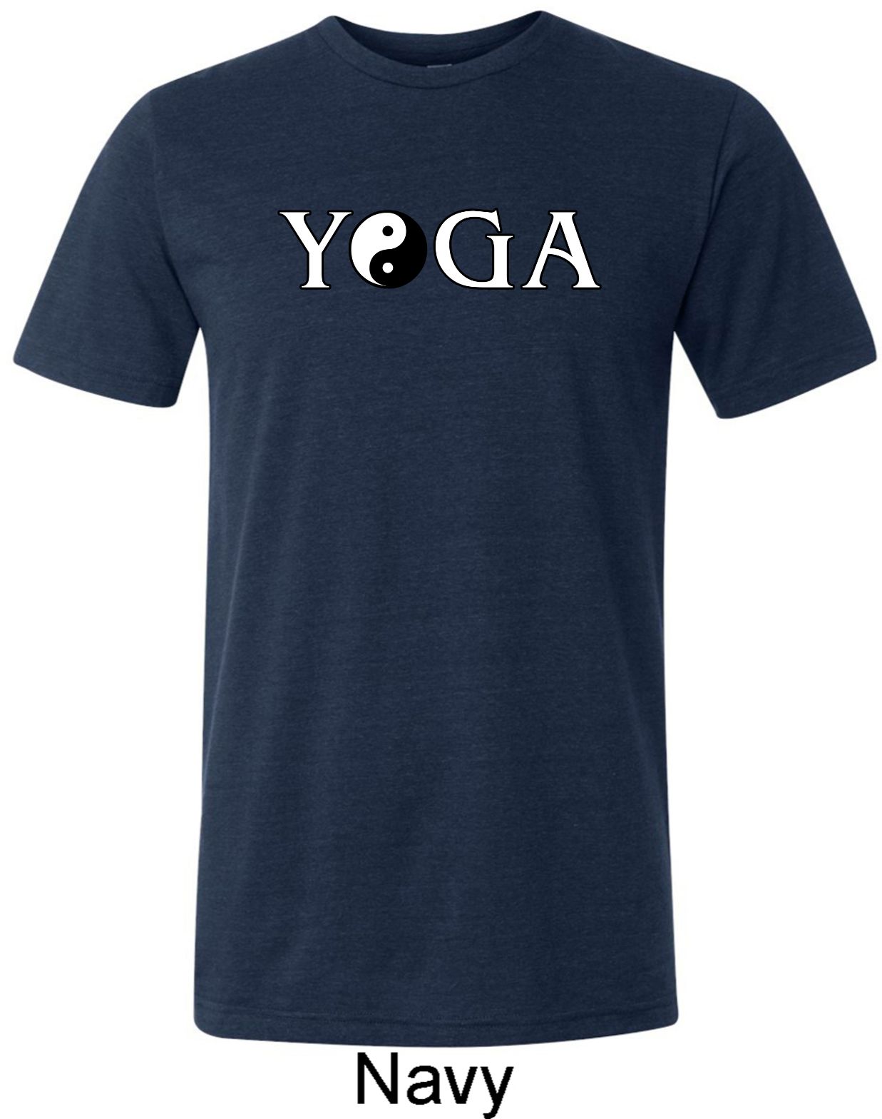 | | Yin Yang Yoga Text Tri Blend TeeA soft mens t-shirt featuring Yoga with a yin yang symbol replacing the "o". Our mens tee is favored for its soft touch and comfortable fit. It's made with a premium blend of poly/cotton/rayon. Available in sizes Small through 3XL. Machine wash cold with like colors; dry low heat. ![]() |