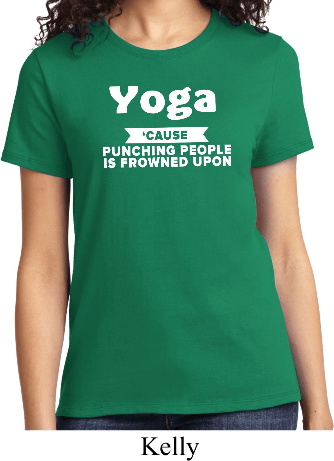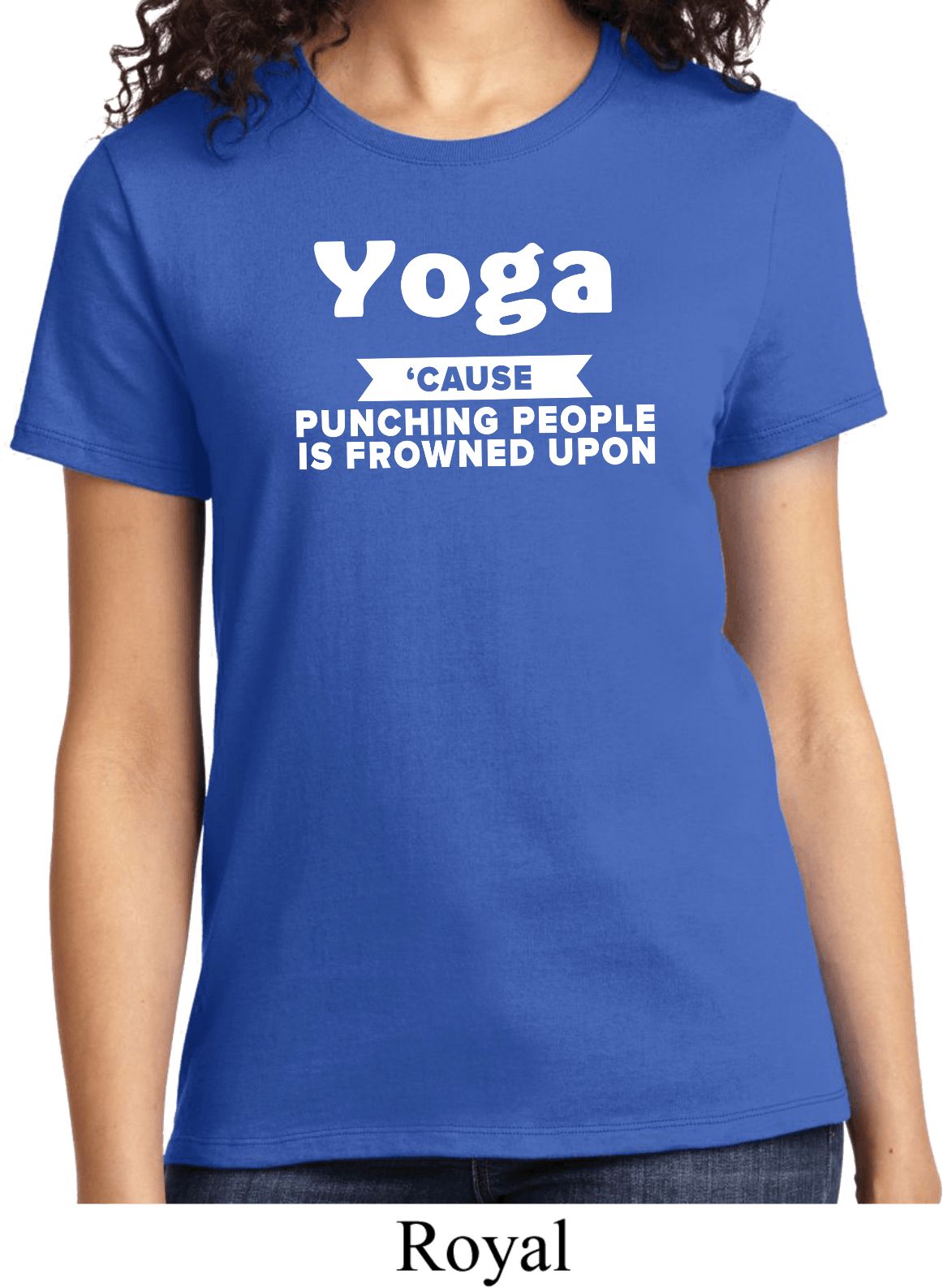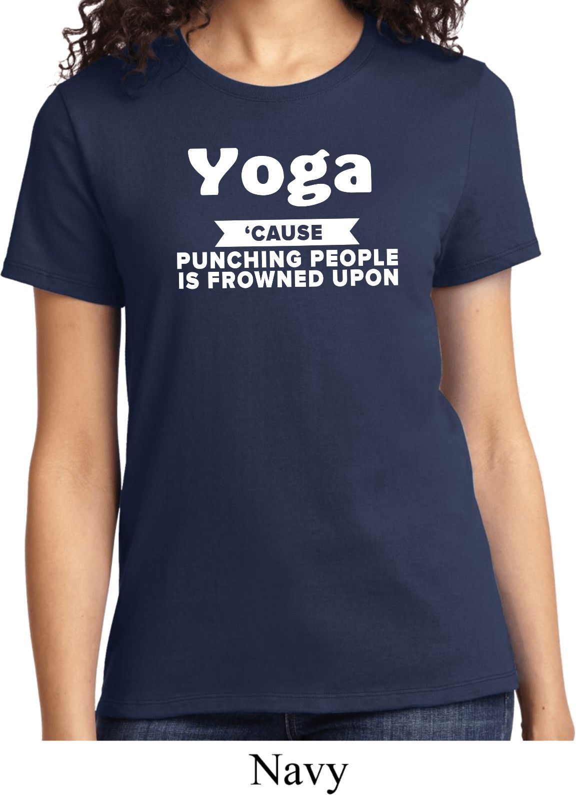 | | Yoga Cause Punching People is Frowned Upon Ladies ShirtYoga Cause Punching People is Frowned Upon Ladies Shirt 100% cotton Ash and athletic heather are a cotton/poly blend A funny shirt for yogis who practice yoga everyday on a ladies tee Available in Ladies Small, Ladies Medium, Ladies Large, Ladies XL, Ladies 2XL, Ladies 3XL & Ladies 4XL Also available in colors Aquatic Blue, Athletic Heather, Black, Candy Pink, Charcoal, Chocolate, Dark Green, Gold, Kelly, Navy, Orange, Purple, Red, Royal, Sangria, and Stonewashed Green ![]() |