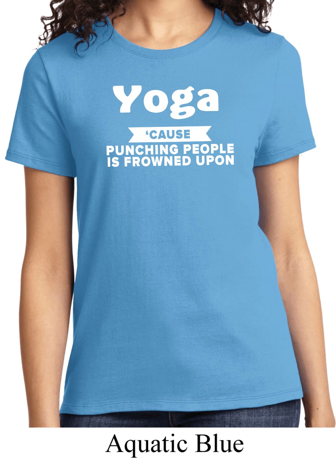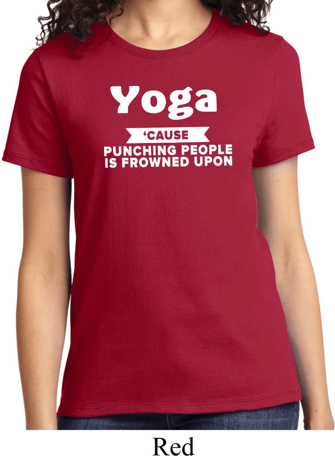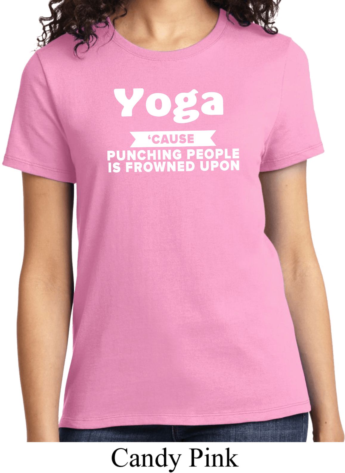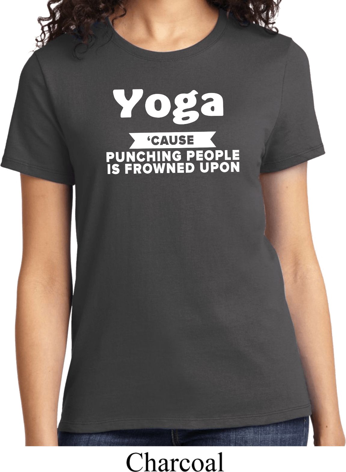 | | Yoga Cause Punching People is Frowned Upon Ladies ShirtYoga Cause Punching People is Frowned Upon Ladies Shirt 100% cotton Ash and athletic heather are a cotton/poly blend A funny shirt for yogis who practice yoga everyday on a ladies tee Available in Ladies Small, Ladies Medium, Ladies Large, Ladies XL, Ladies 2XL, Ladies 3XL & Ladies 4XL Also available in colors Aquatic Blue, Athletic Heather, Black, Candy Pink, Charcoal, Chocolate, Dark Green, Gold, Kelly, Navy, Orange, Purple, Red, Royal, Sangria, and Stonewashed Green ![]() |