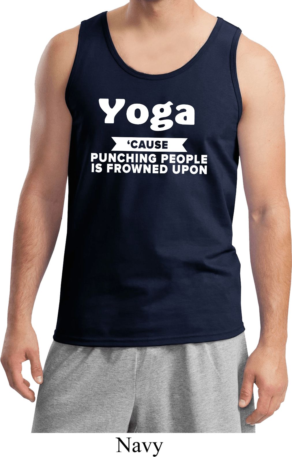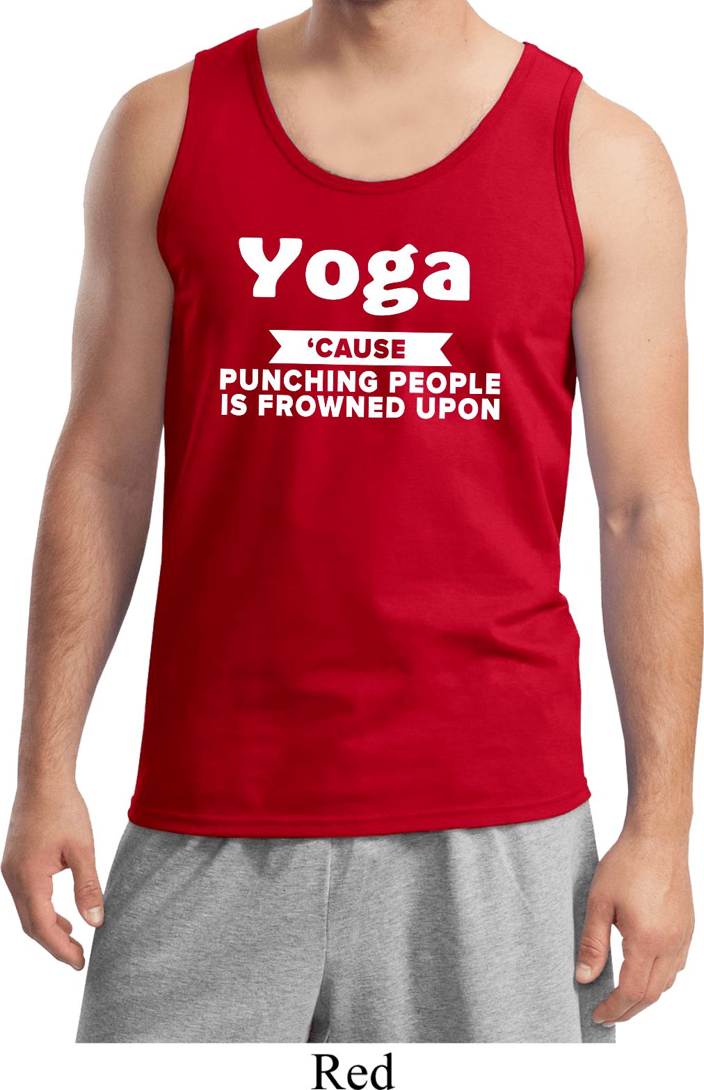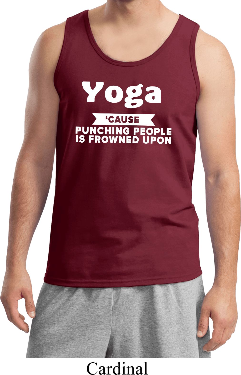 | | Yoga Cause Punching People is Frowned Upon Mens Tank TopYoga Cause Punching People is Frowned Upon Mens Tank Top A funny shirt for yogis who practice yoga everyday on a mens tanktop 100% cotton Ash is a cotton/poly blend Available in Small, Medium, Large, XL & 2XL Also available in colors Black, Cardinal, Carolina Blue, Charcoal, Navy, Orange, Purple, Red, Royal, Sapphire, and Sports Grey ![]() |