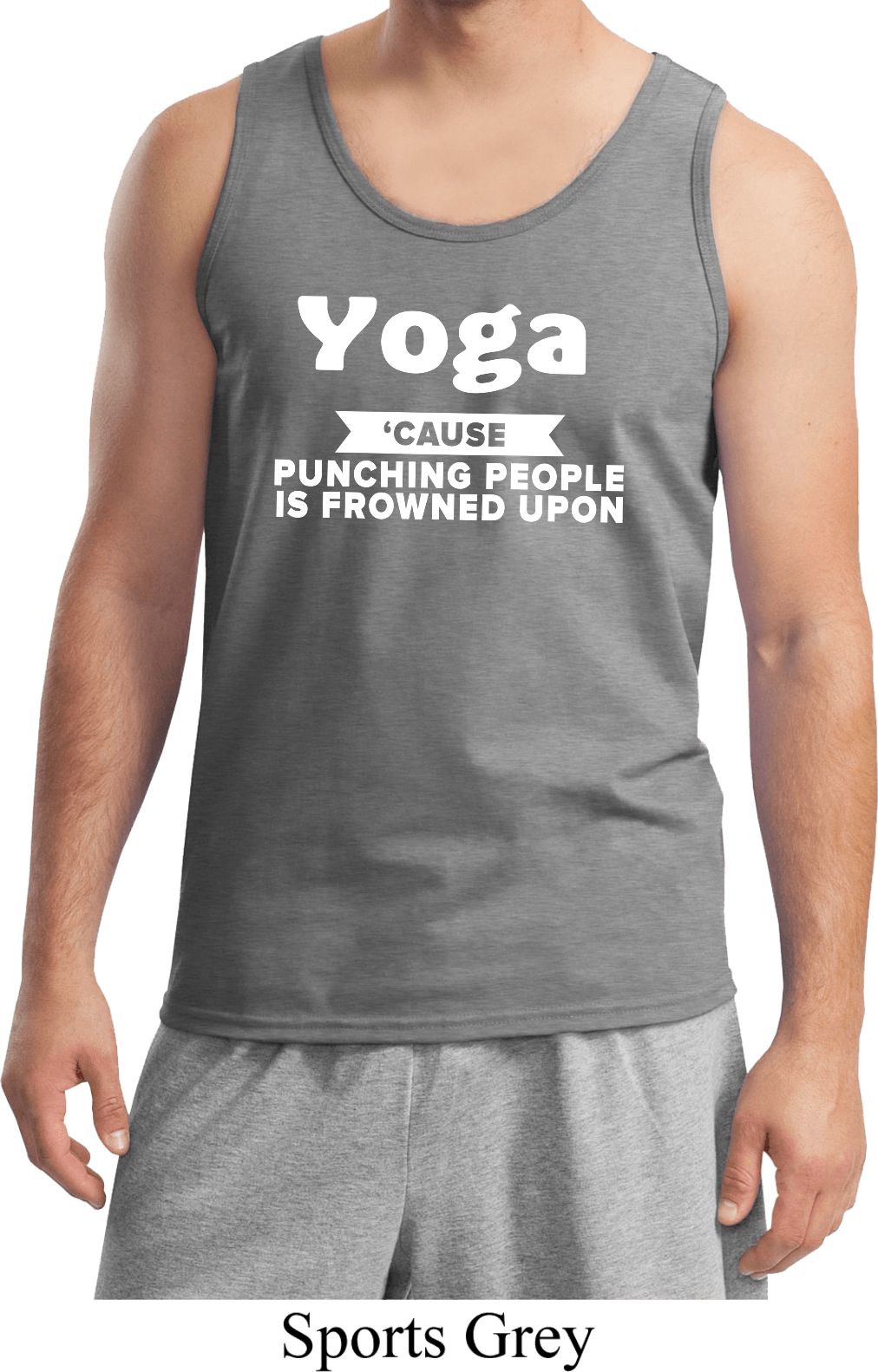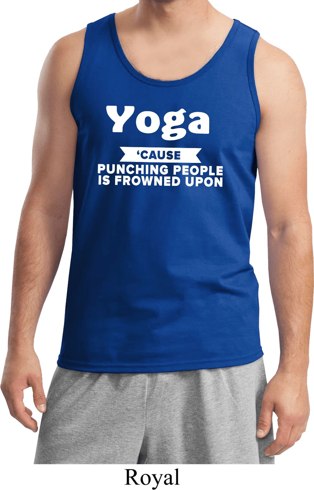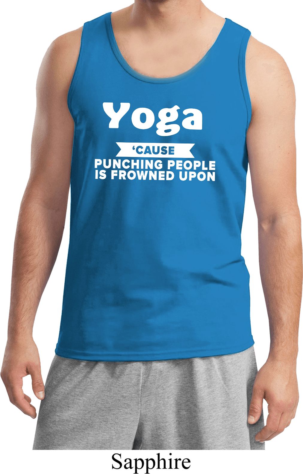 | | Yoga Cause Punching People is Frowned Upon Mens Tank TopYoga Cause Punching People is Frowned Upon Mens Tank Top A funny shirt for yogis who practice yoga everyday on a mens tanktop 100% cotton Ash is a cotton/poly blend Available in Small, Medium, Large, XL & 2XL Also available in colors Black, Cardinal, Carolina Blue, Charcoal, Navy, Orange, Purple, Red, Royal, Sapphire, and Sports Grey ![]() |