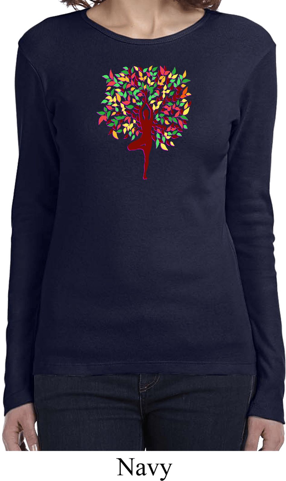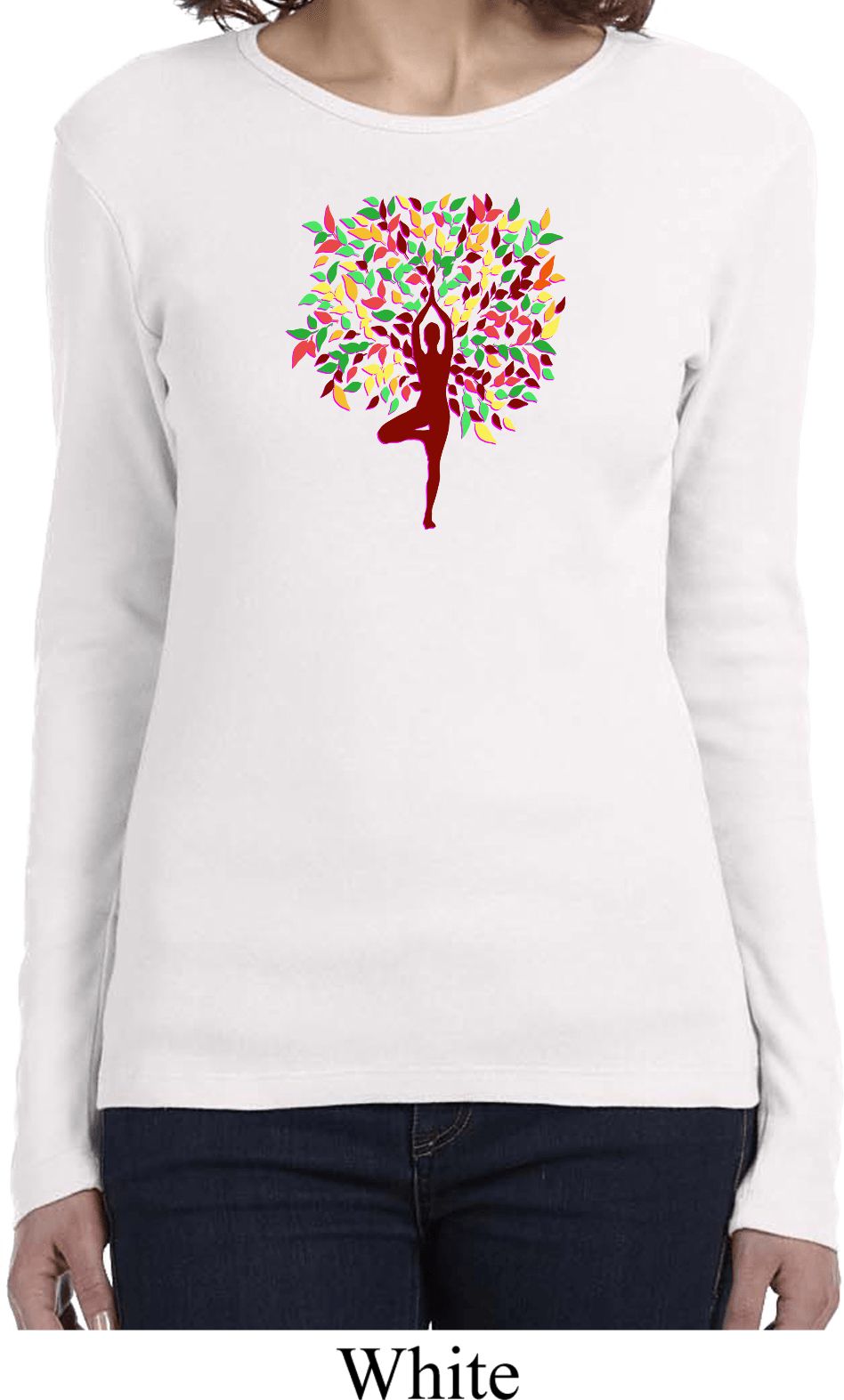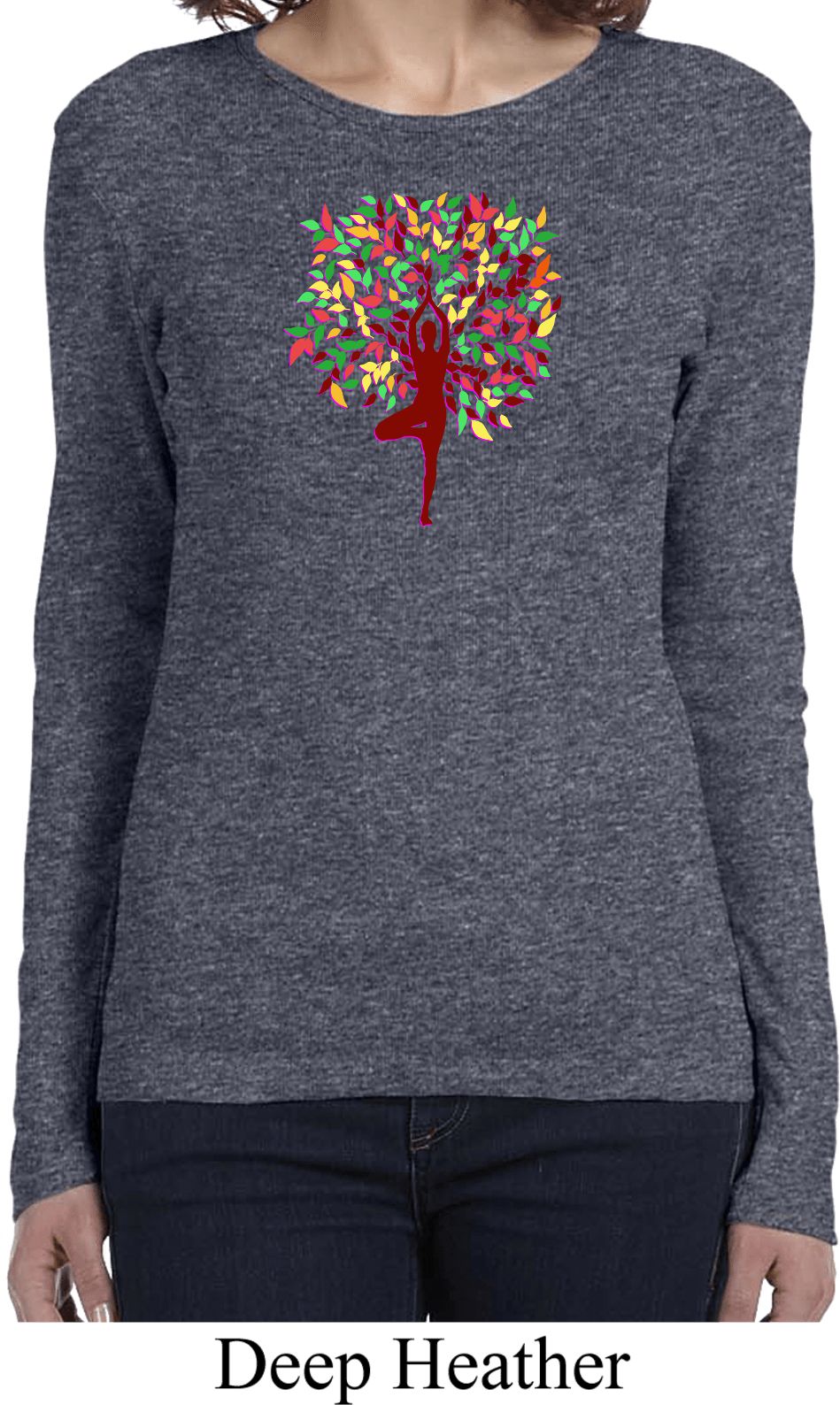 | | Yoga Foliage Tree Pose Ladies Long Sleeve ShirtYoga Foliage Tree Pose Ladies Long Sleeve Shirt 100% cotton Deep heather is a cotton/poly blend A fall themed tree pose Available in Ladies Small, Ladies Medium, Ladies Large, Ladies XL & Ladies 2XL Also available in colors Black, Deep Heather, Navy, Pink, Red, and White ![]() |