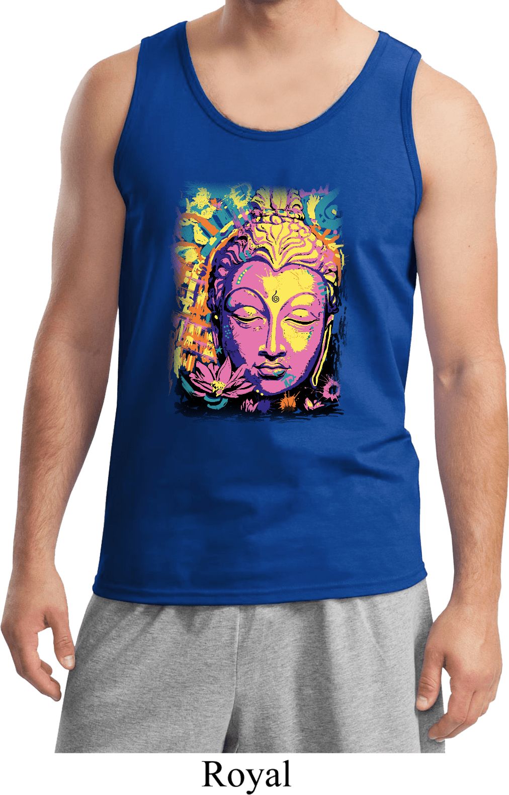 | | Yoga Psychedelic Buddha Tank TopYoga Psychedelic Buddha Tank Top A colorful buddha 100% cotton Ash is a cotton/poly blend Available in Small, Medium, Large, XL & 2XL Also available in colors Ash, Black, Cardinal, Carolina Blue, Charcoal, Lime, Navy, Orange, Purple, Red, Royal, Sapphire, Sports Grey, and White ![]() |