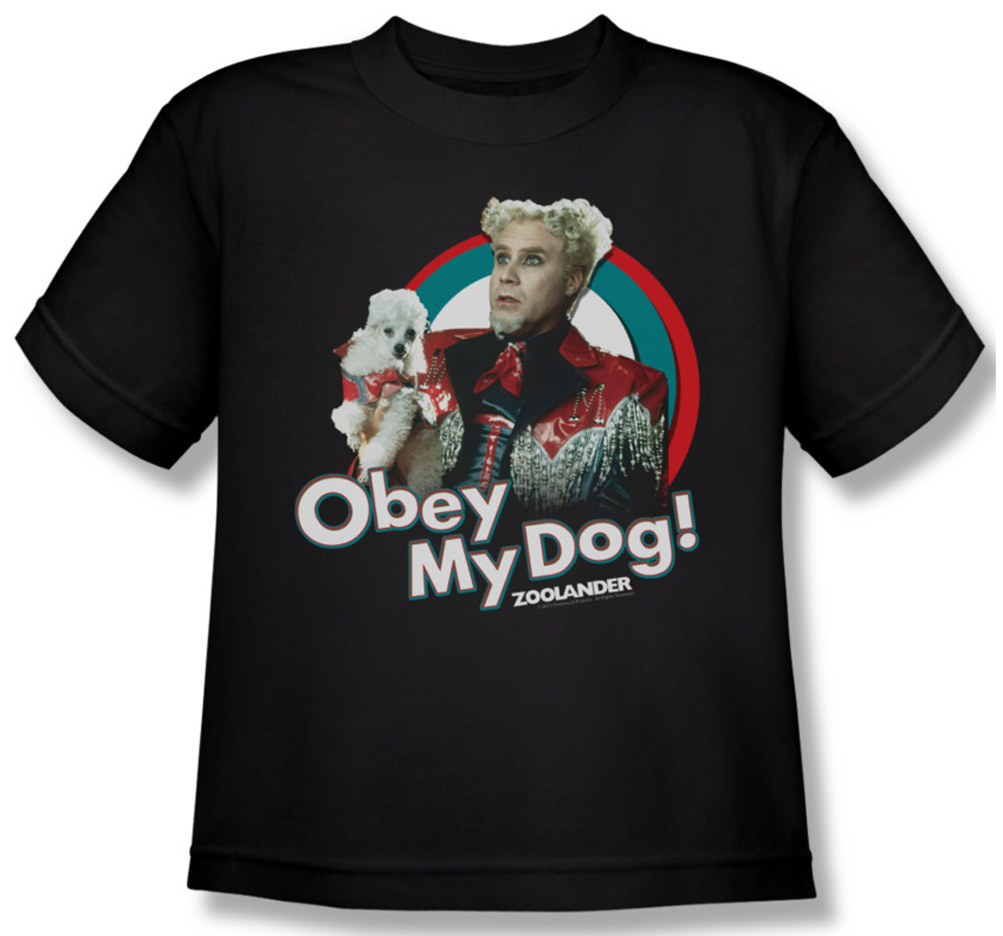 | | Zoolander Shirt Kids Obey My Dog Black Youth Tee T-ShirtZoolander Shirt Kids Obey My Dog Black Youth Tee T-Shirt Officially Licensed Available in Small(6-8), Medium(10-12), Large(14-16), & XL(18-20), Also available in Toddler sizes: Small (4), Medium (5/6), & Large (7) ![]() |